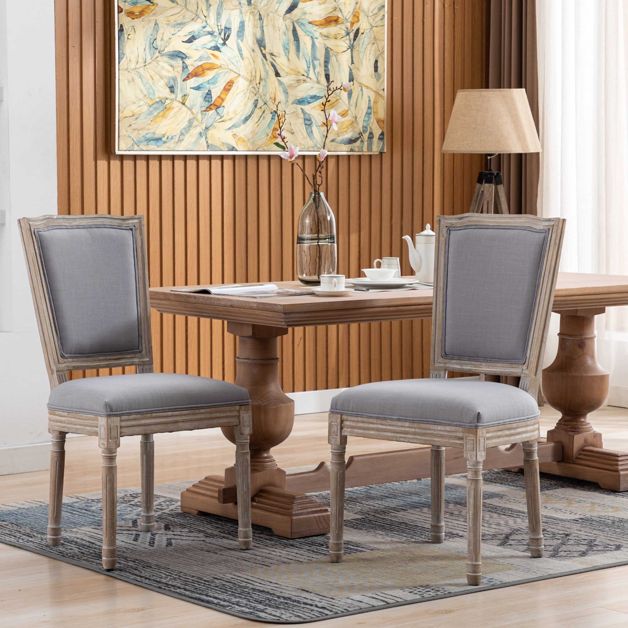 Mieres French Country Style Fabric Upholstered High Back Dining Chair, Farmhouse Kitchen Wooden Side Chairs (Set of 2) - N/A