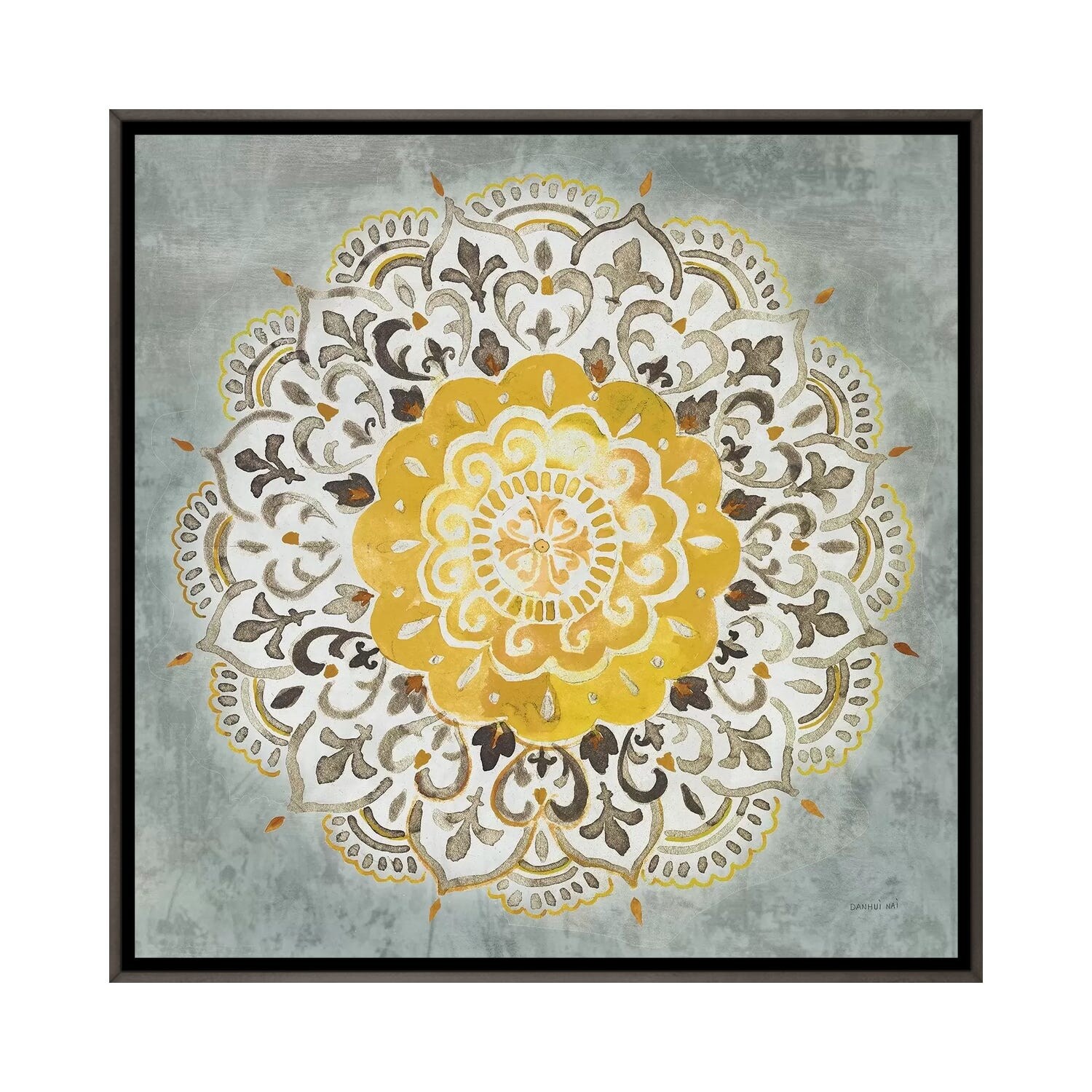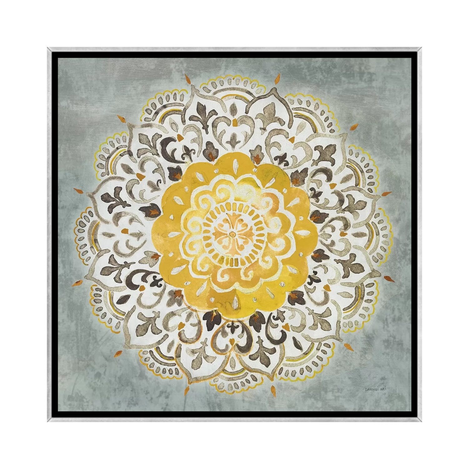 iCanvas "Mandala Delight IV Yellow Gray" by Danhui Nai Framed
