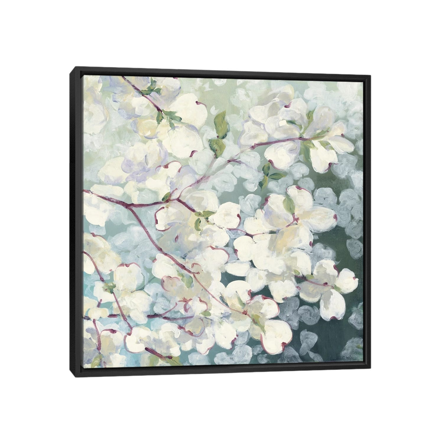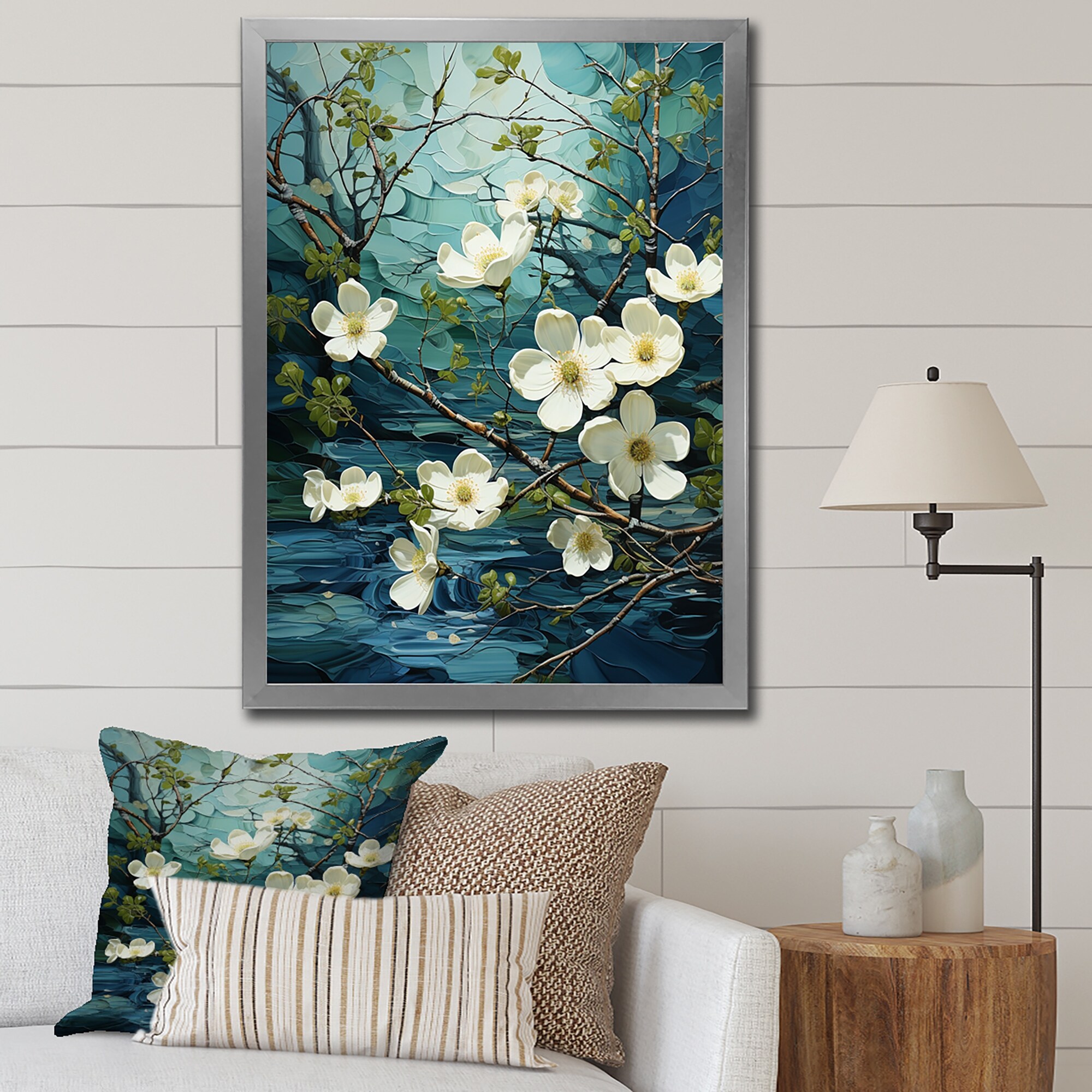 Designart "Teal White Dogwood Delight" Dogwood Framed Canvas Prints