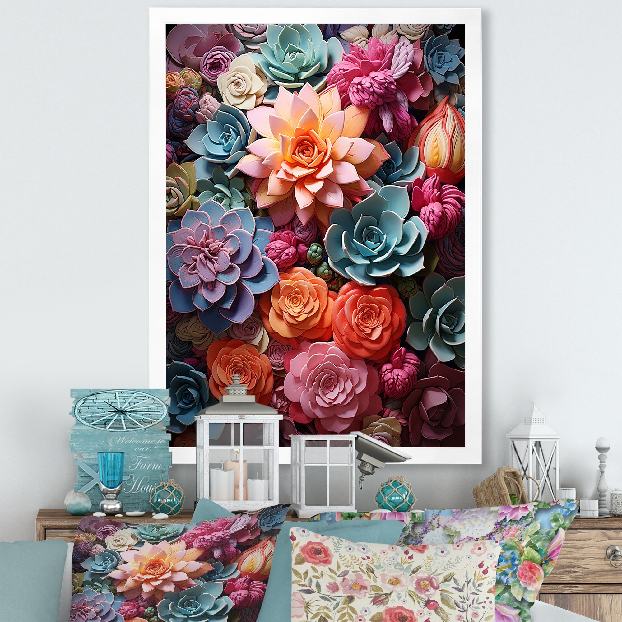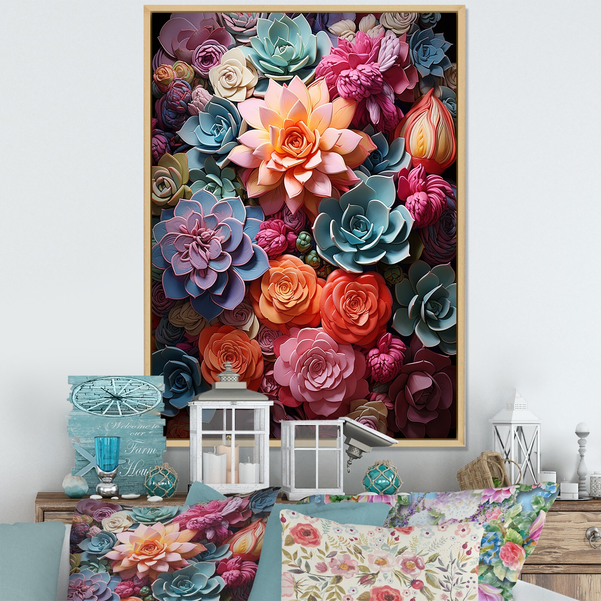 Designart "Colorful Succulents Succulent Delight" Succulent Framed Canvas Art Print