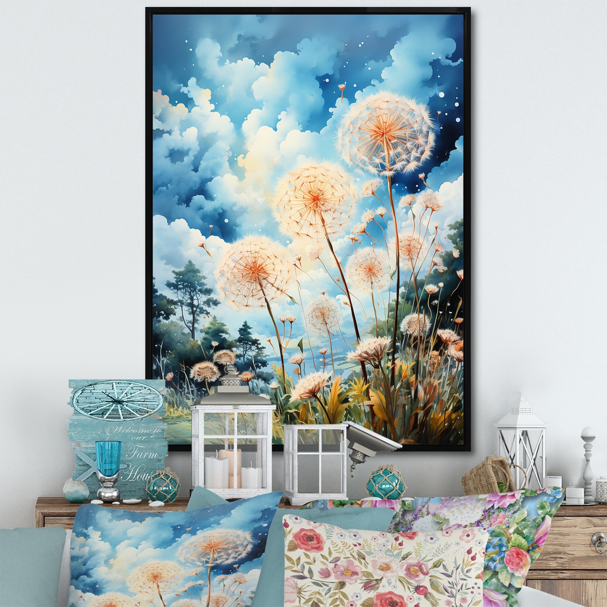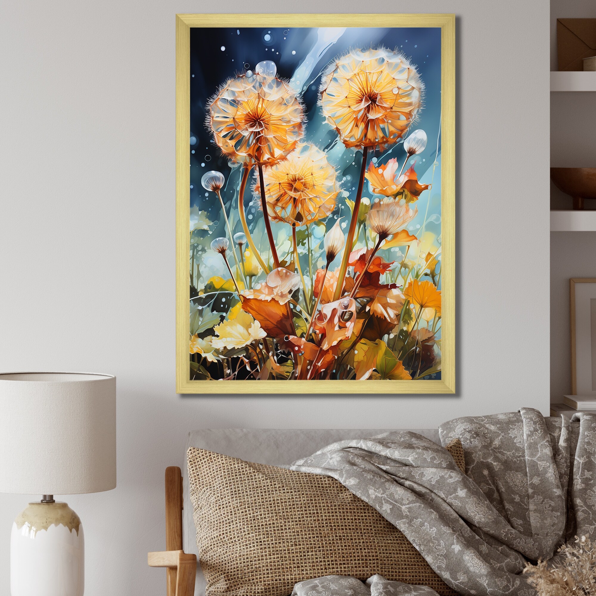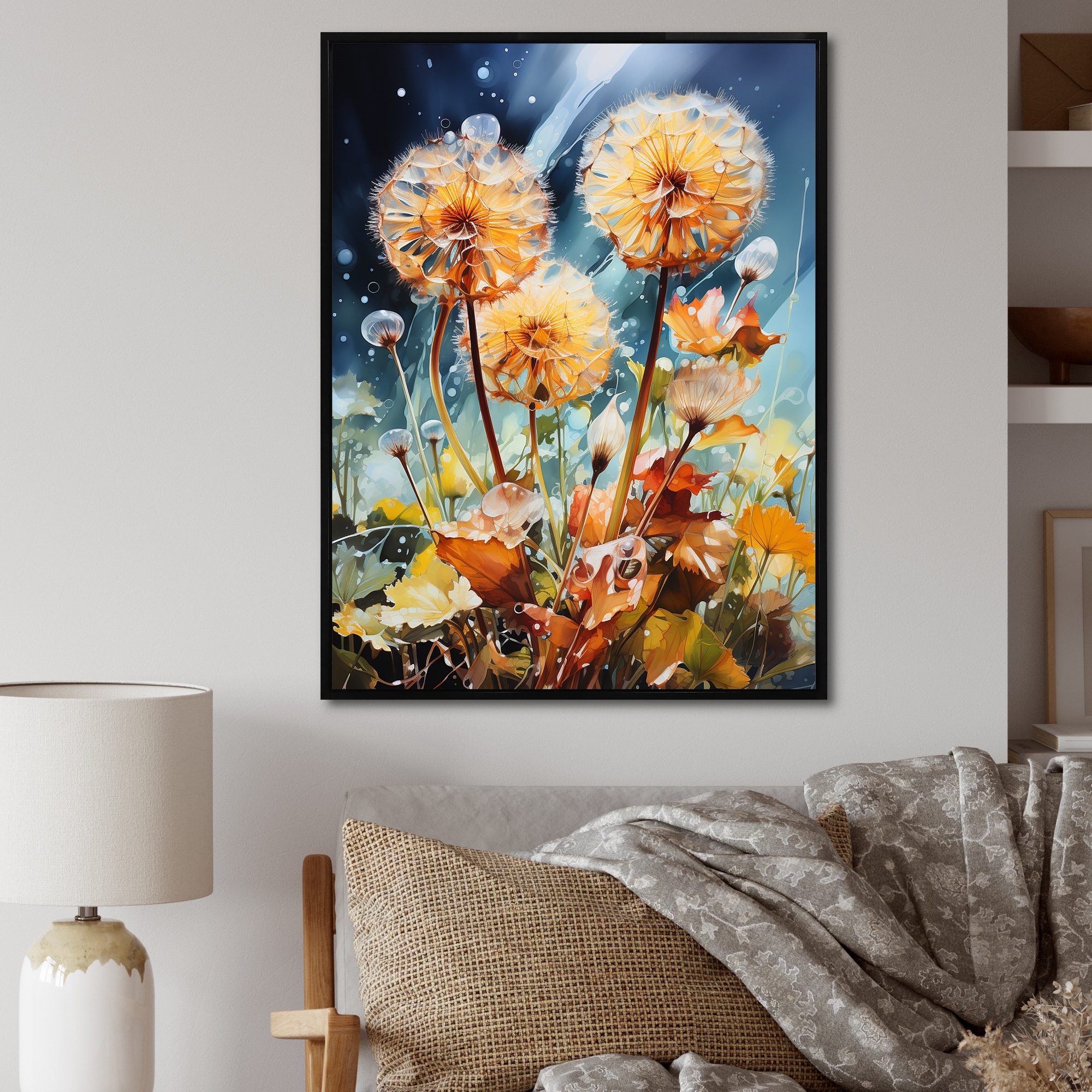 Designart "Meadow Dandelion Delight II" Meadow Framed Wall Decor
