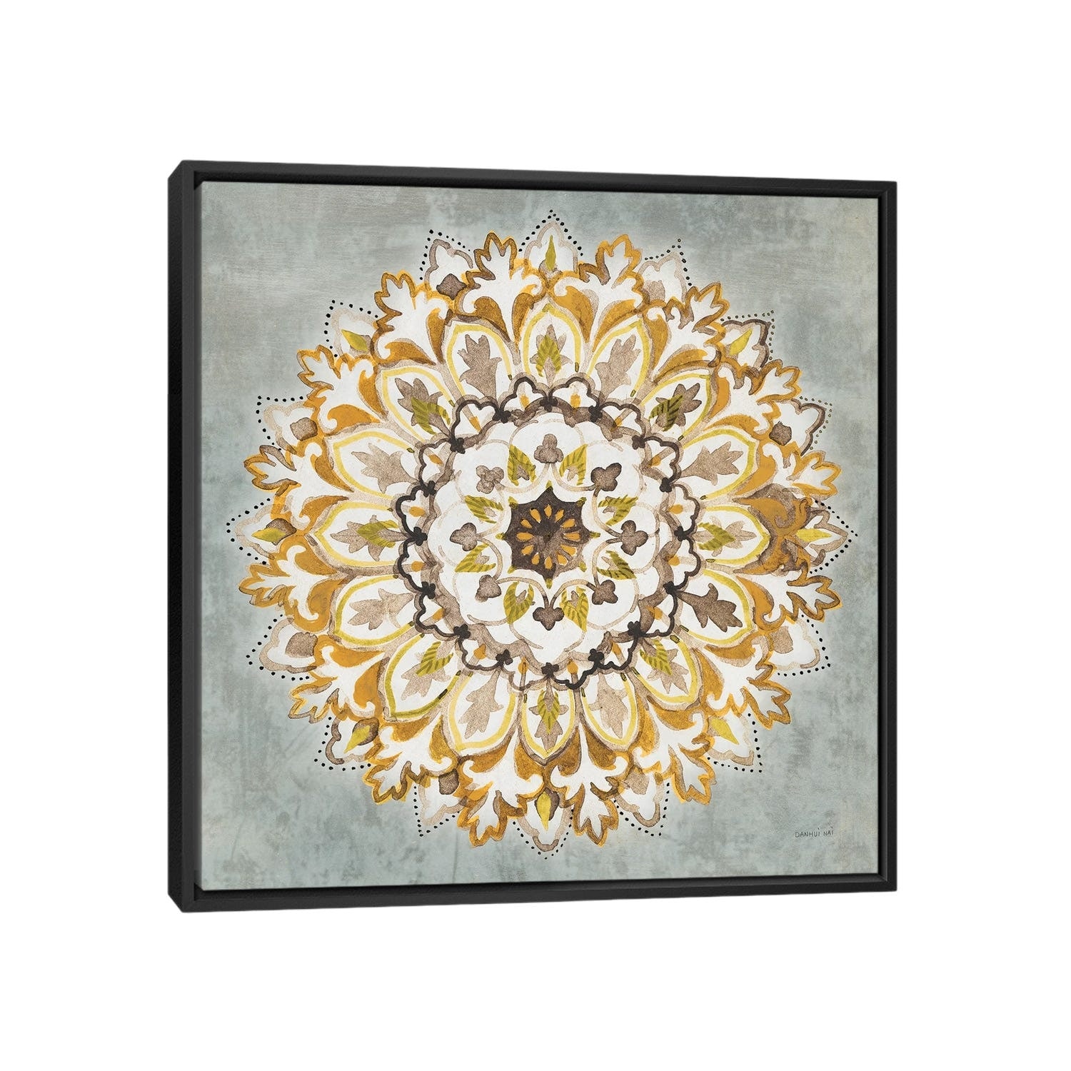 iCanvas "Mandala Delight II Yellow Gray" by Danhui Nai Framed Canvas Print
