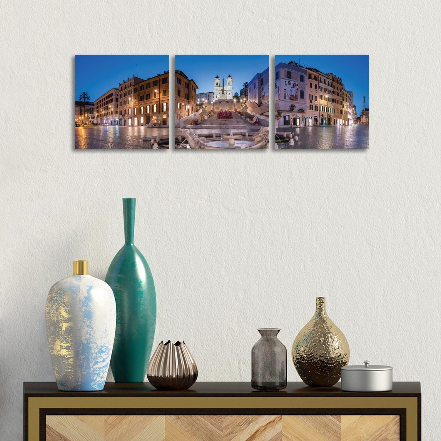 iCanvas "The Spanish Steps And Fontana della Barcaccia At the Piazza di Spagna, Rome, Italy" by Jan Becke 3-Piece Wall Art Set