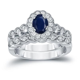 Auriya Vintage 1ct Sapphire Oval and 3/5ctw Halo Diamond Engagement Ring Set Platinum