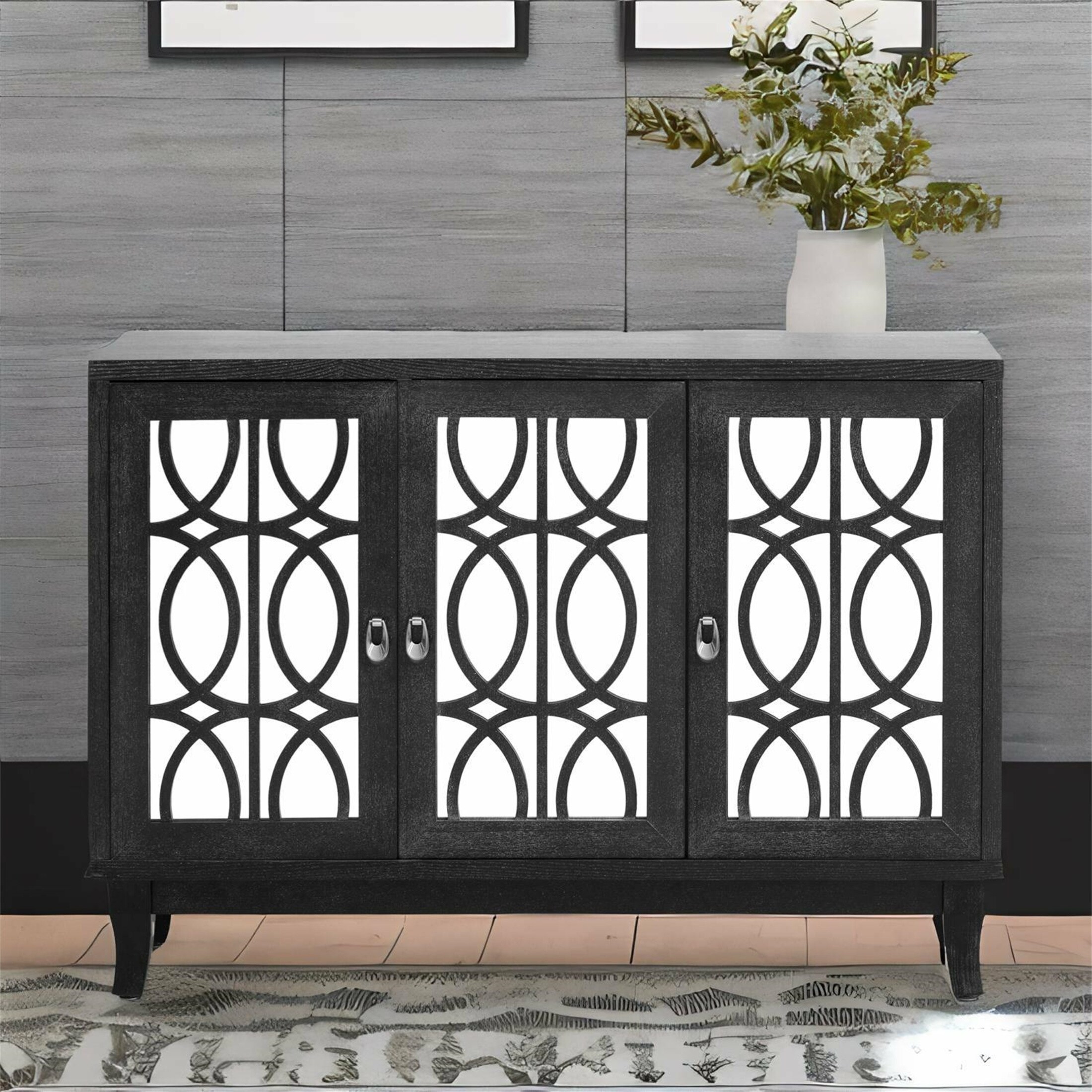3 Door Mirrored Buffet Cabinet with Silver Handle for Living Room