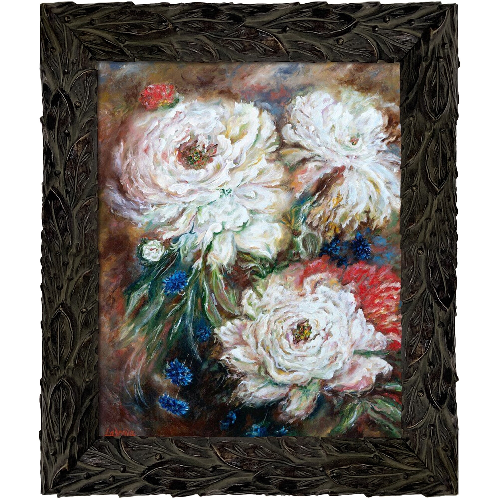 ArtistBe Flowers with Feathered Ebony Frame, 11.24" x 13.24"