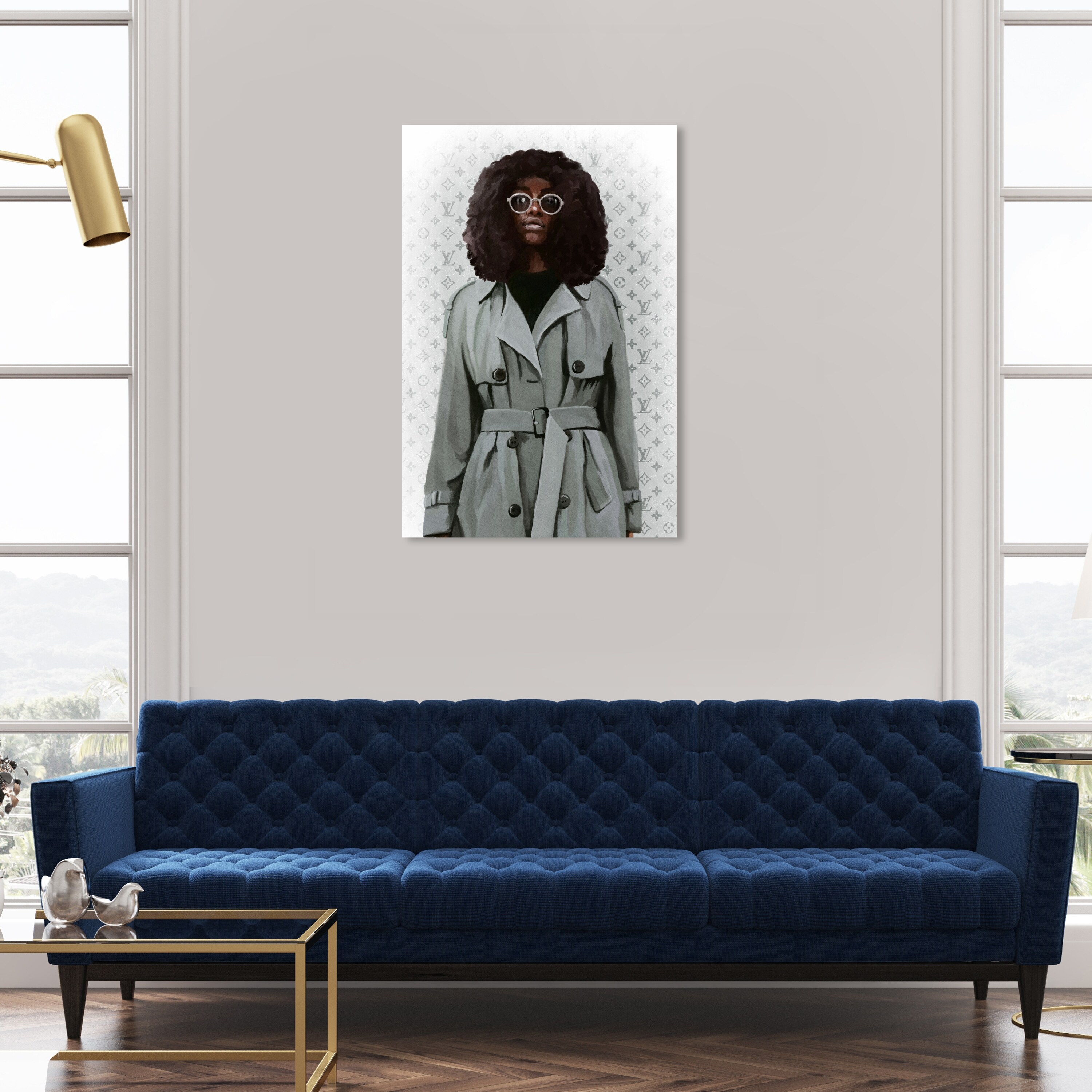Oliver Gal 'Ebony Glam and Fashion Coat' Glam Gray Wall Art