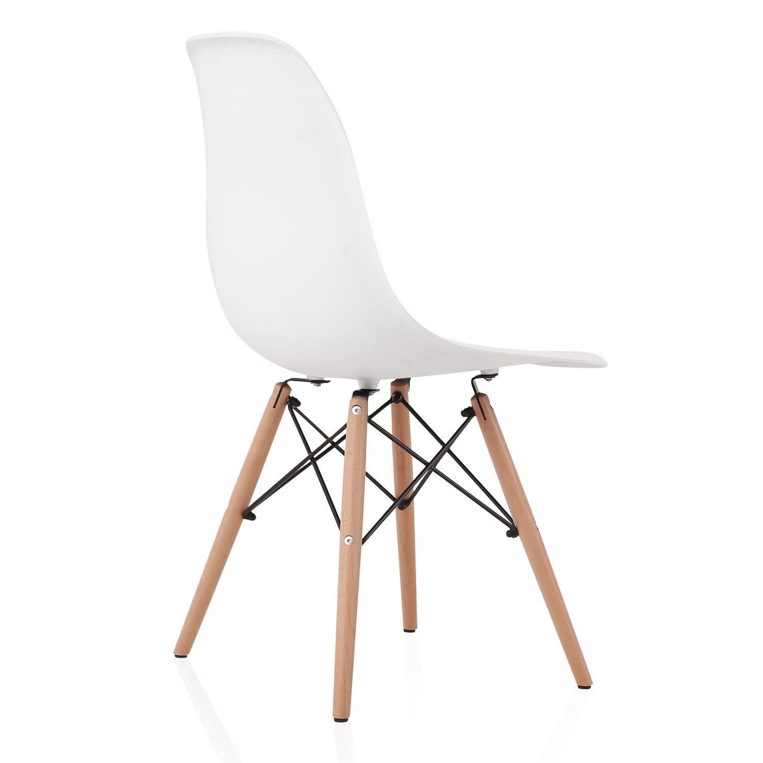 CozyBlock Set of 4 Molded White Plastic Dining Shell Chair with Beech Wood Eiffel Legs