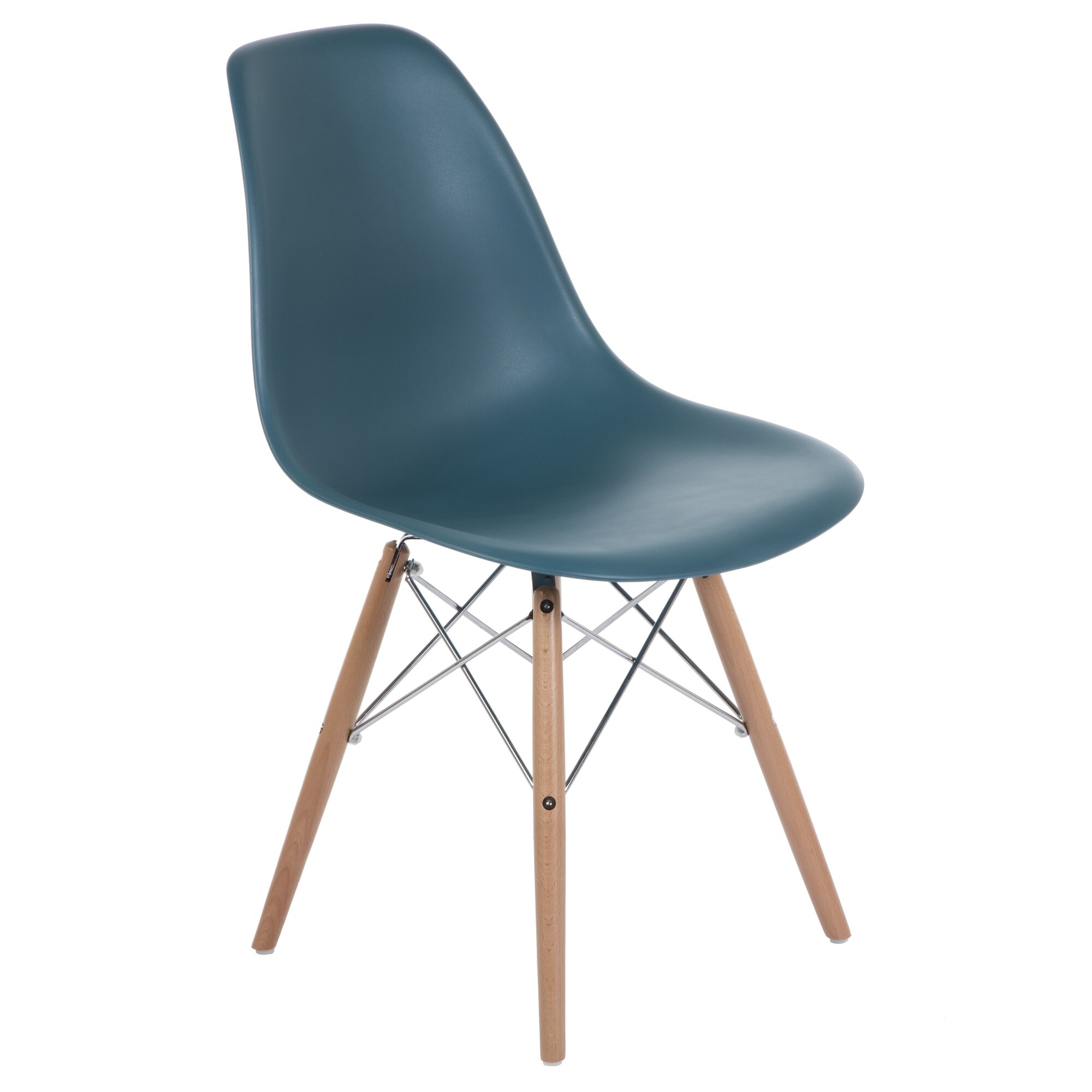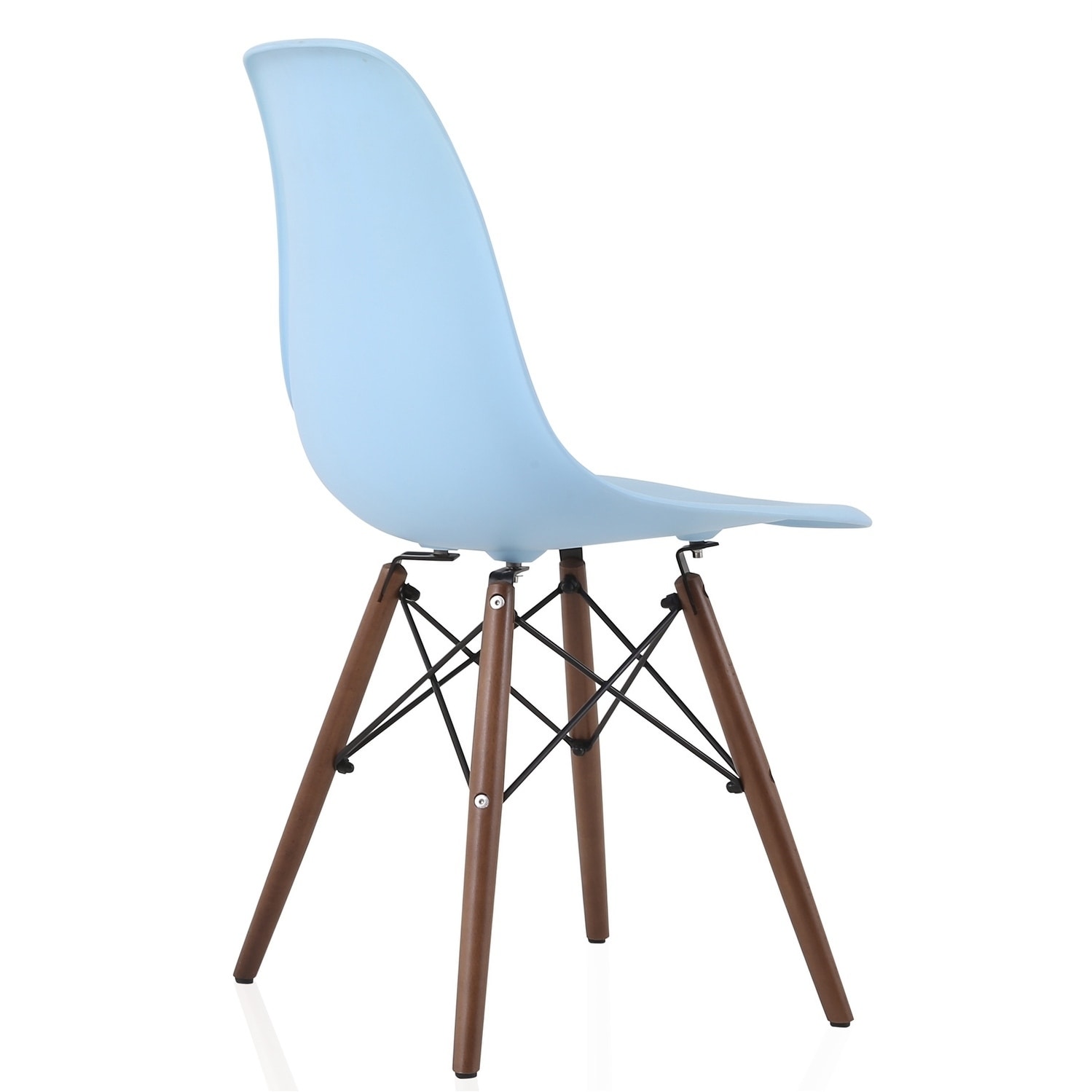CozyBlock Set of 4 Molded Blue Plastic Dining Shell Chair with Dark Walnut Wood Eiffel Legs