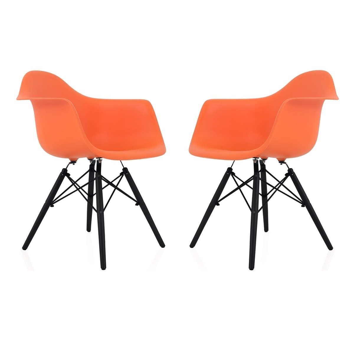 CozyBlock Scandinavian Orange Molded Plastic Dining Arm Chair with Black Wood Eiffel Legs (Set of 2)