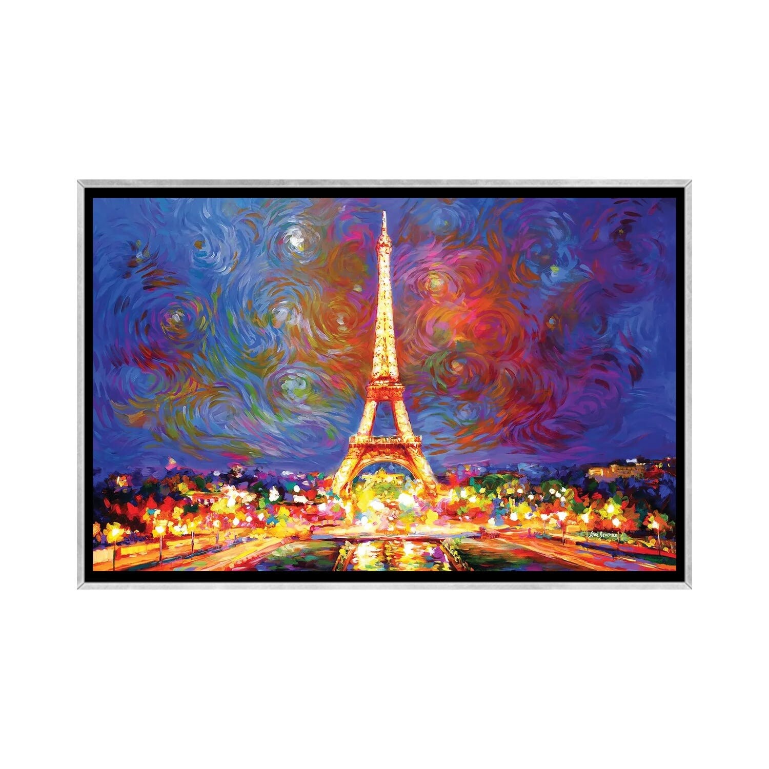 iCanvas "Eiffel Tower At Night" by Leon Devenice Framed