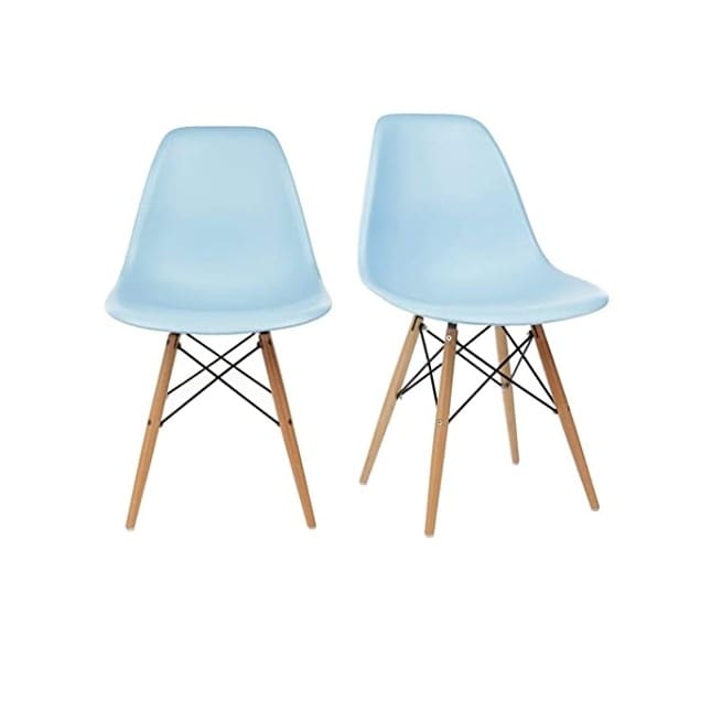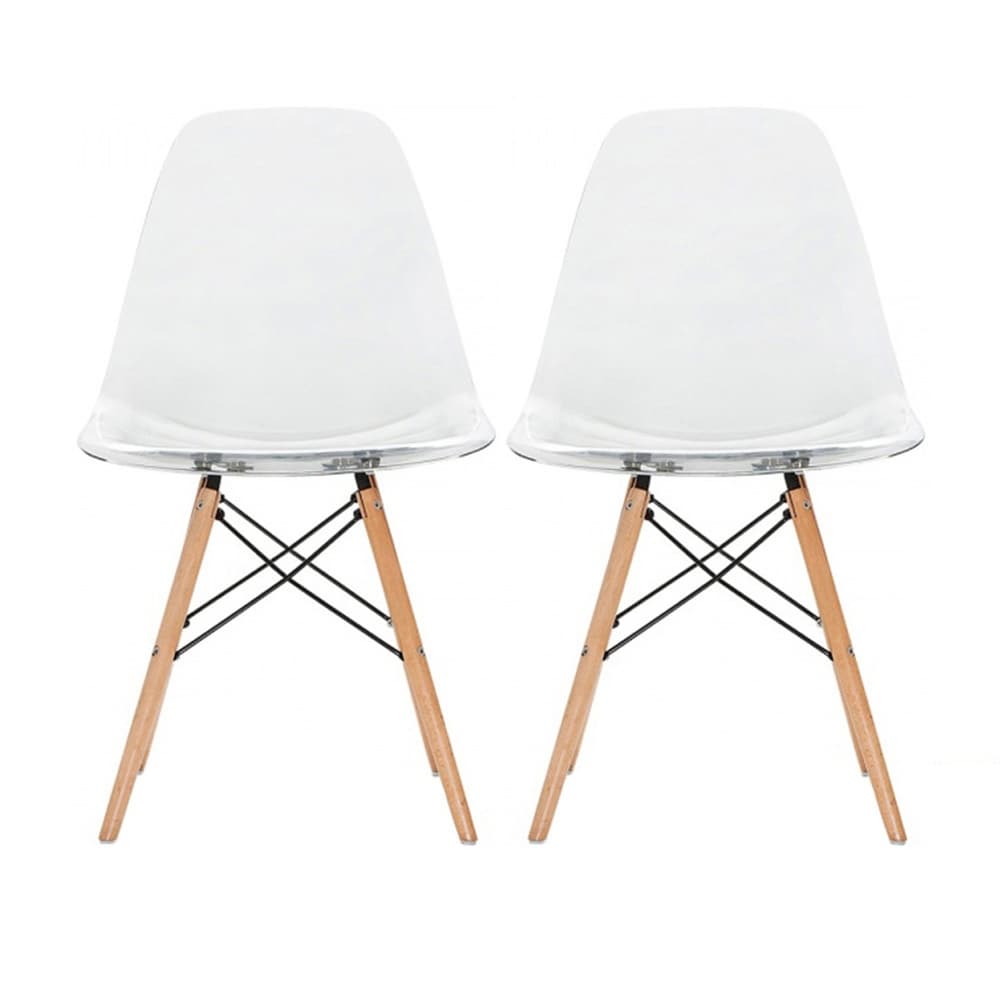 Plastic Eiffel Dining Chairs with Wood Dowel Legs (Set of 2)
