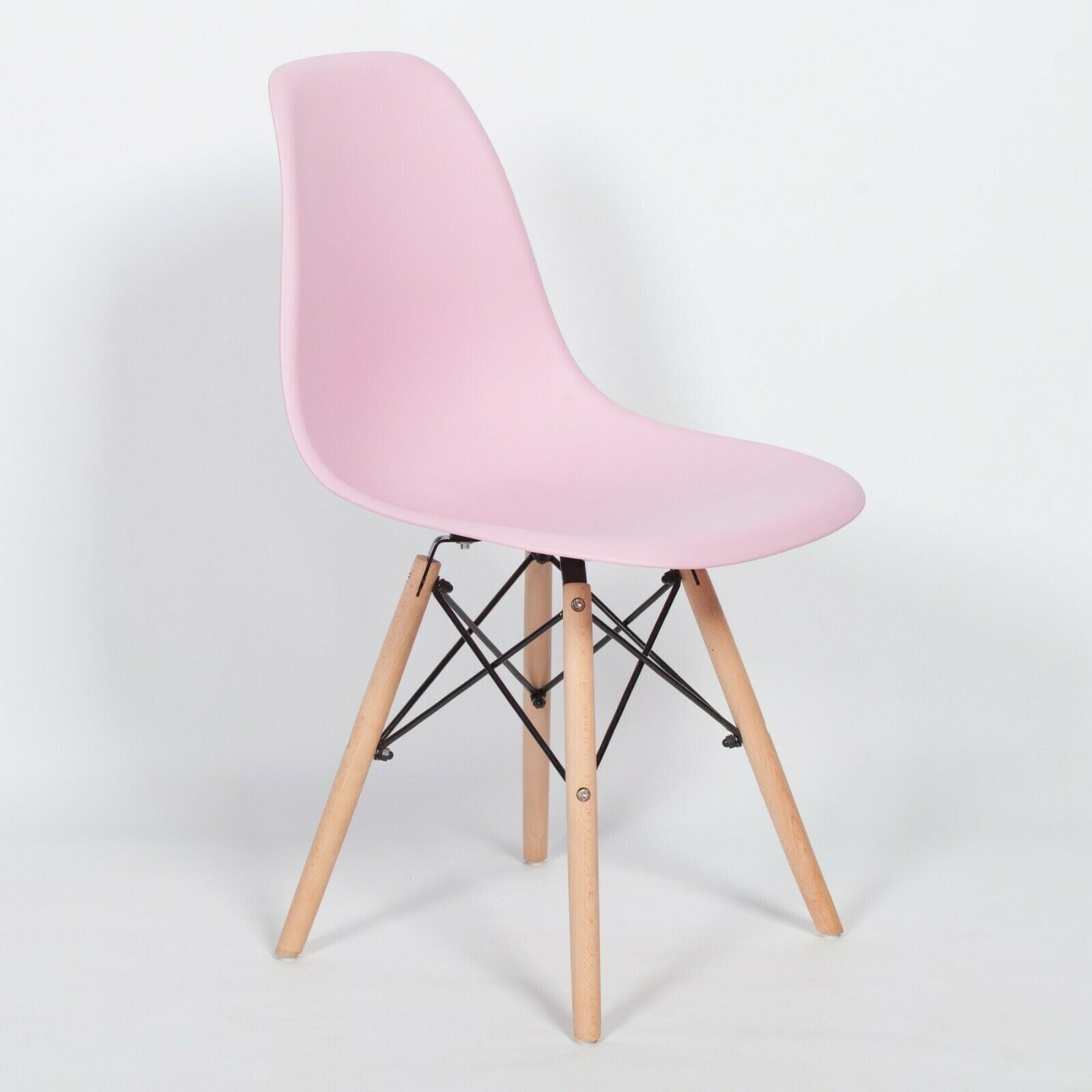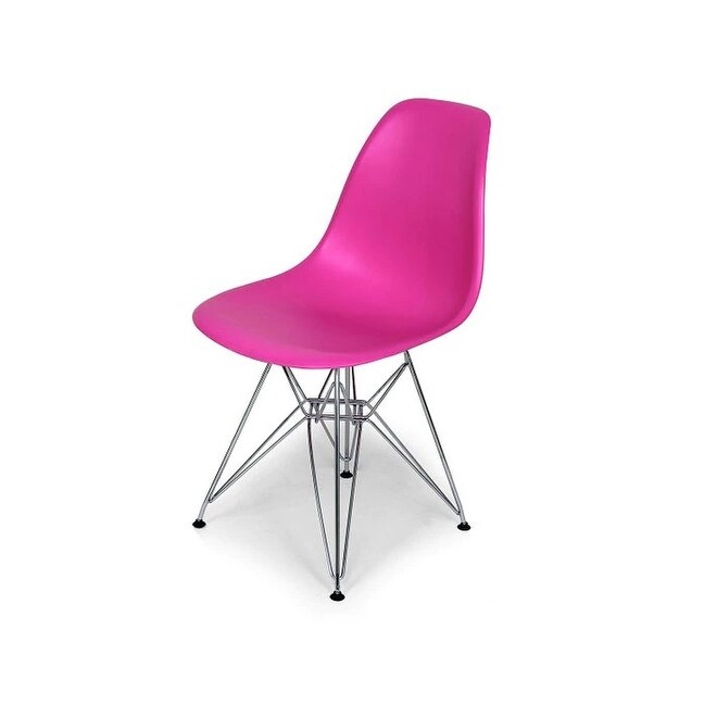 Modern Eiffel Style Chair with Chrome Base & Pink Seat- Set of 2