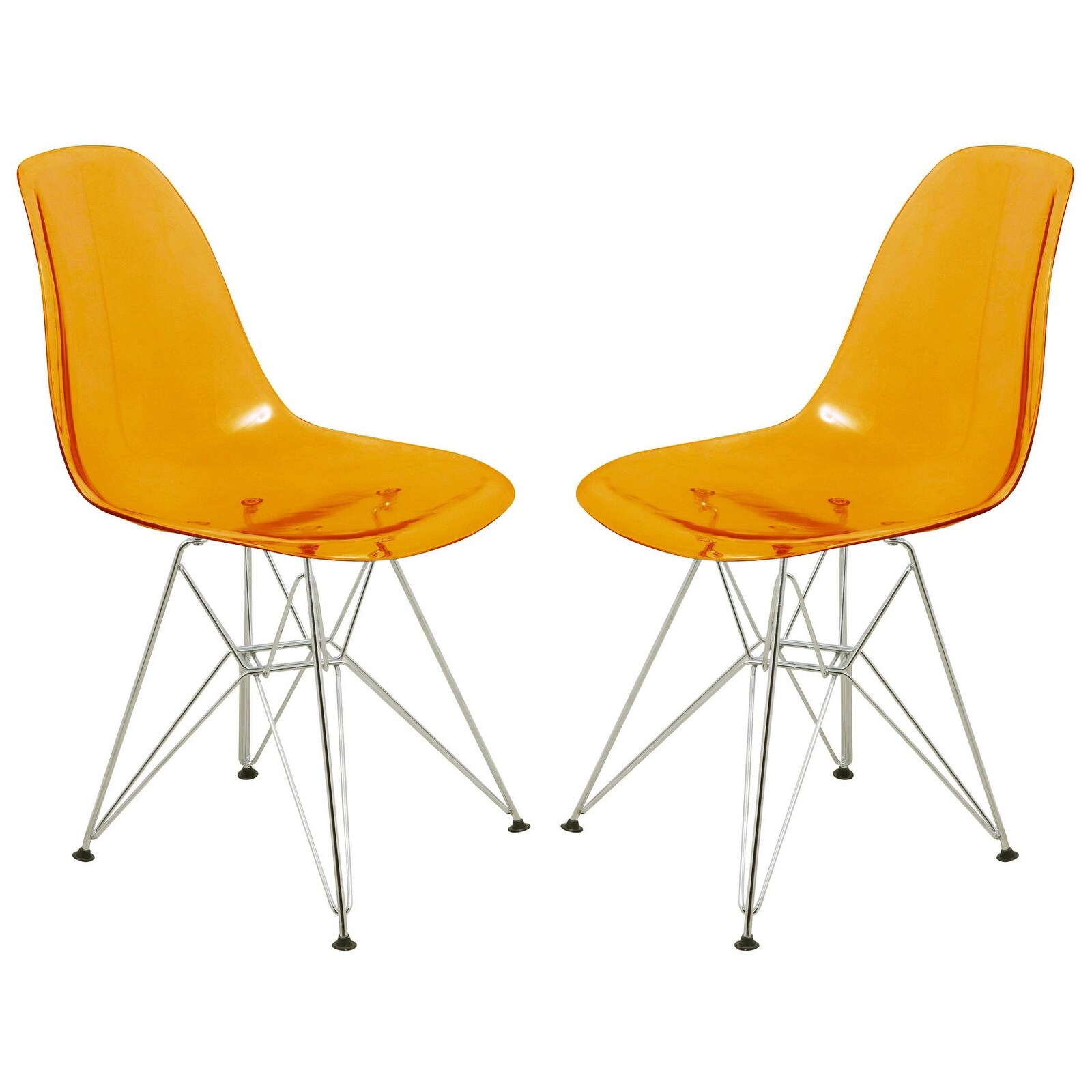 LeisureMod Cresco Modern Dining Chair Eiffel Chrome Legs Set of 2