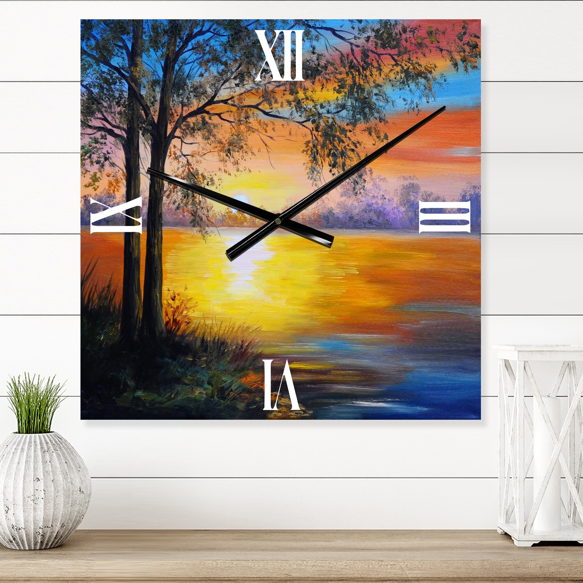 Designart 'Evening Tree Near the Lake' Traditional wall clock