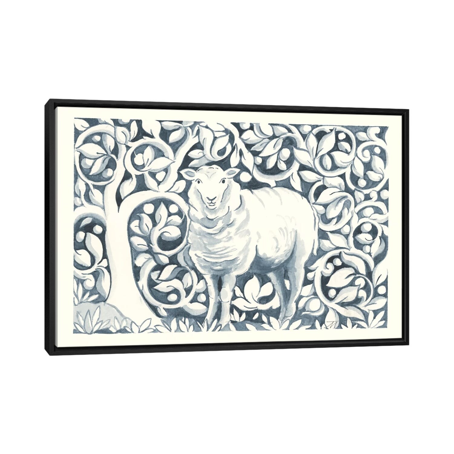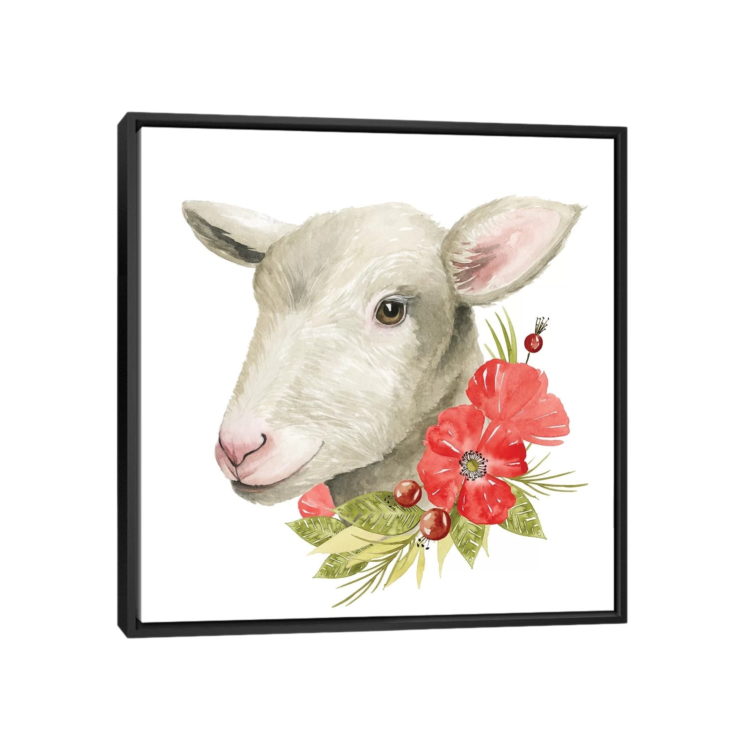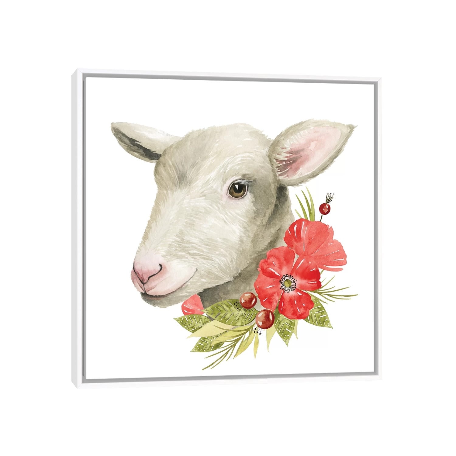 Oliver Gal 'Floral Llama' Animals Wall Art Framed Canvas Print Farm Animals - White, Blue