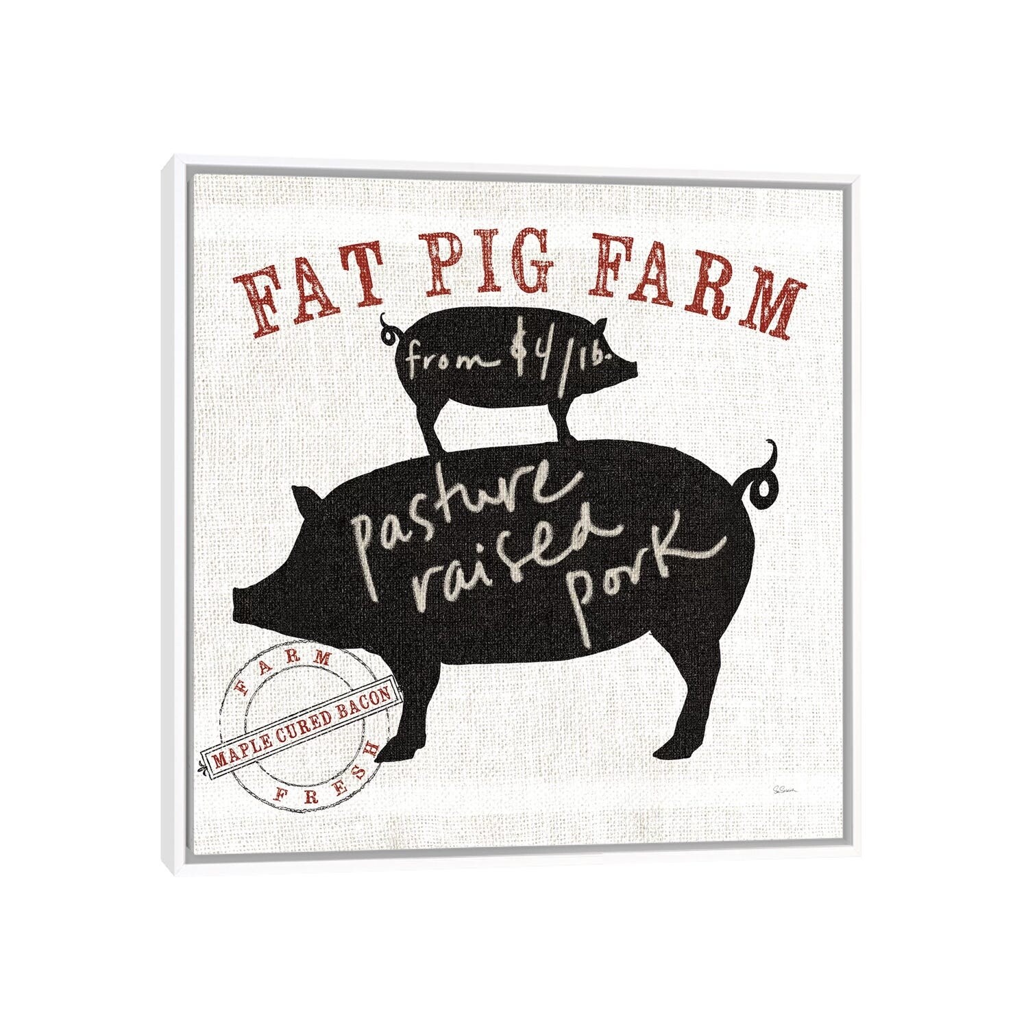 iCanvas "Farm Linen Pig" by Sue Schlabach Framed