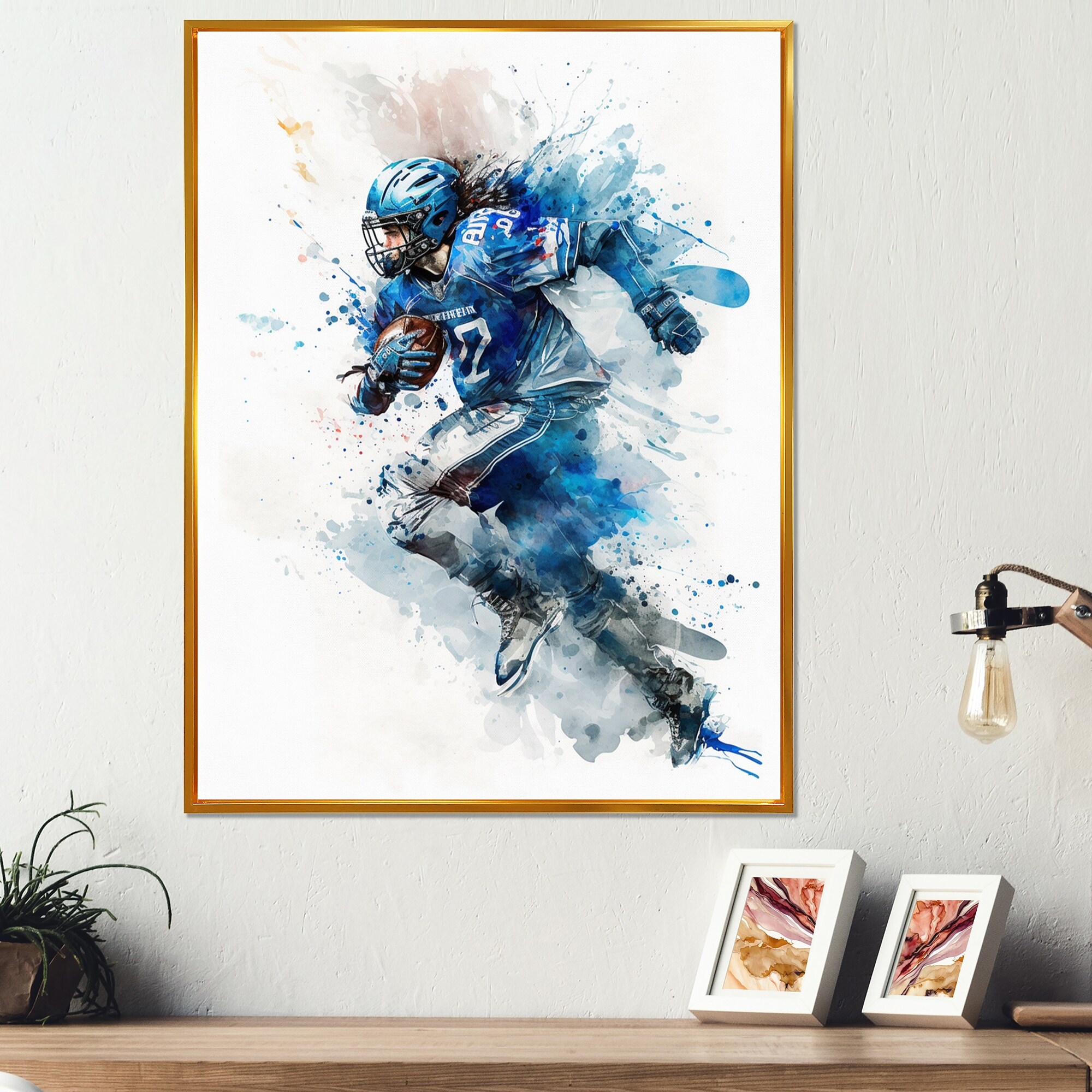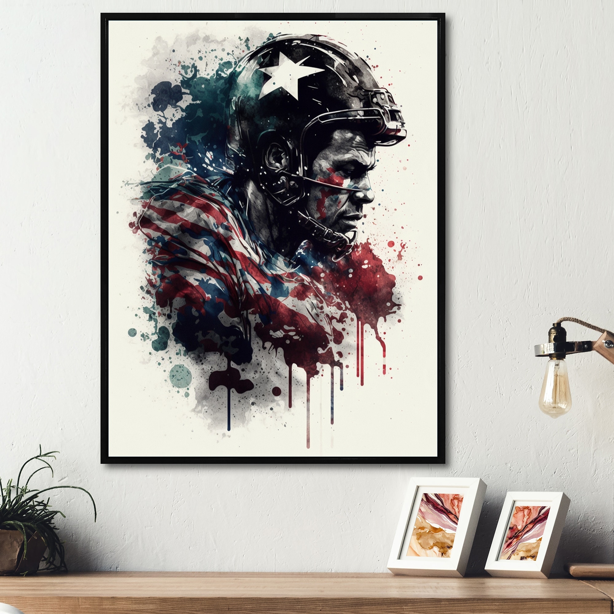 Designart "Football Player Portrait" Modern Framed Canvas Art Print