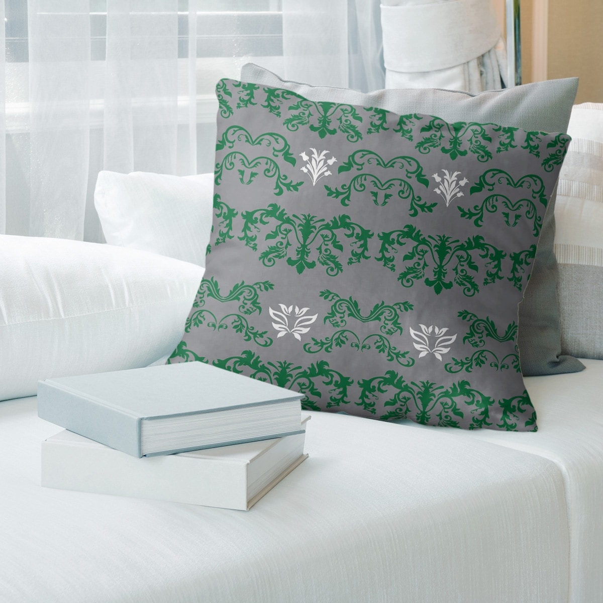 Kansas City Football Baroque Pattern Accent Pillow-Cotton Twill