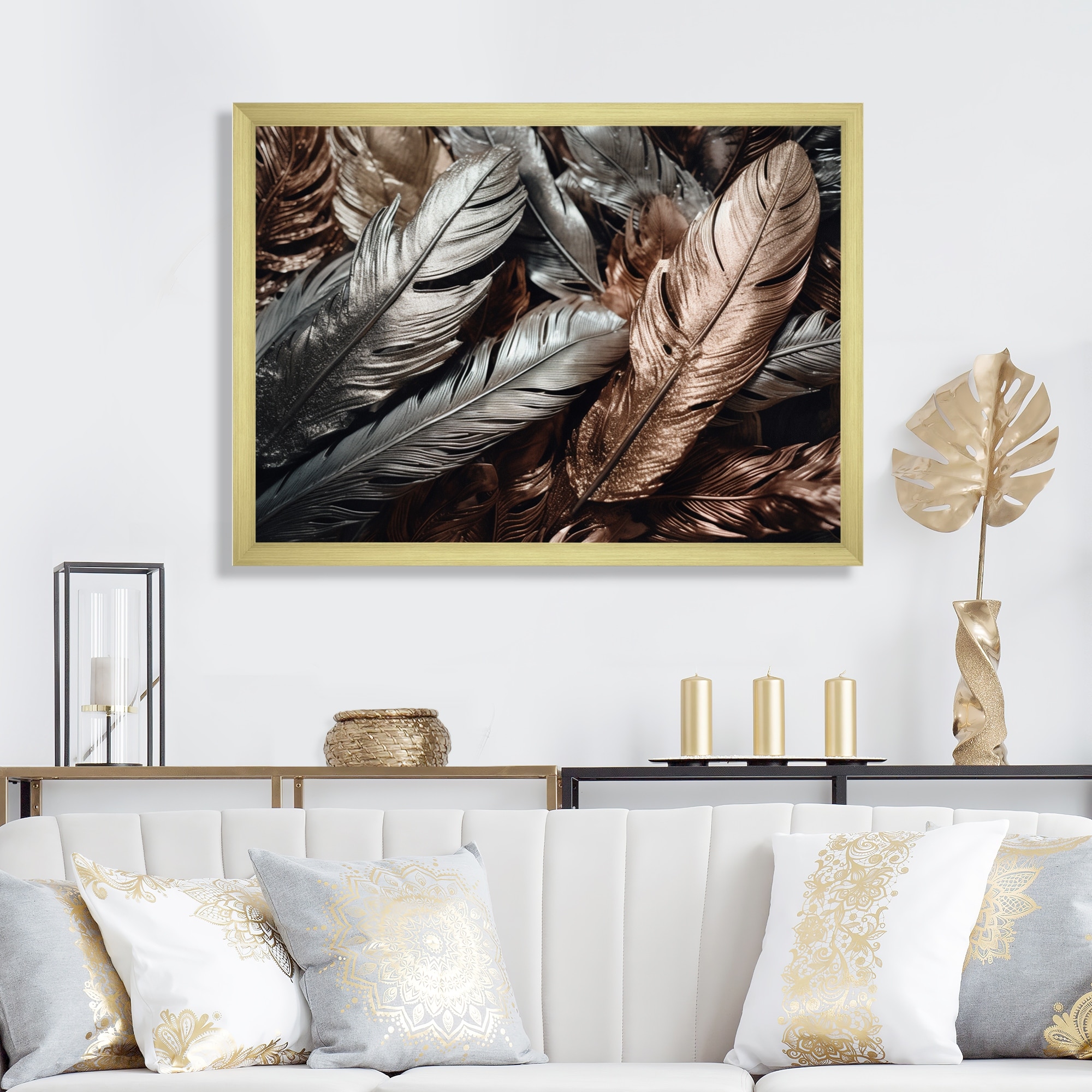 Designart "Silver And Rosegold Expressions of Freedom" Boho Feather Framed Wall Art for Living Room