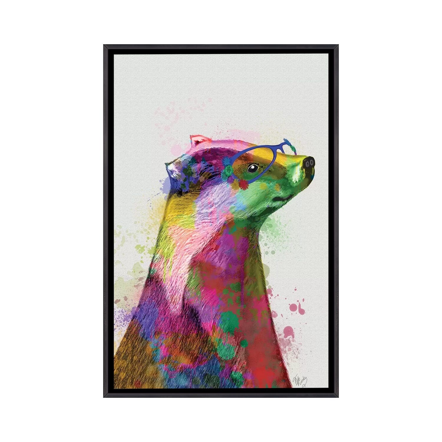 iCanvas "Badger Rainbow Splash 2" by Fab Funky Framed