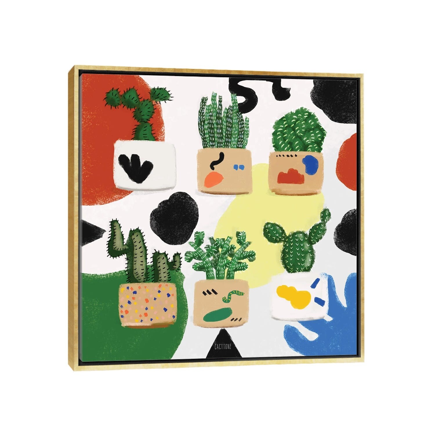 iCanvas "Abstract Funky Cacti Pots" by Cacttone by Ulee Framed