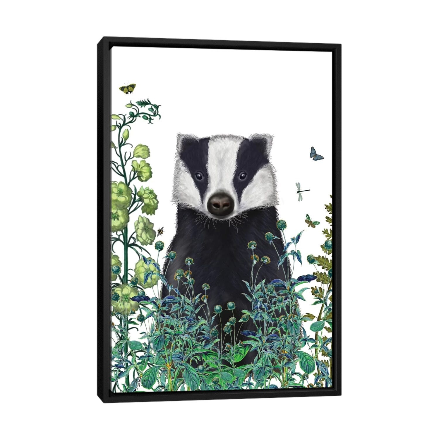 iCanvas "Badger In the Garden II" by Fab Funky Framed Canvas Print