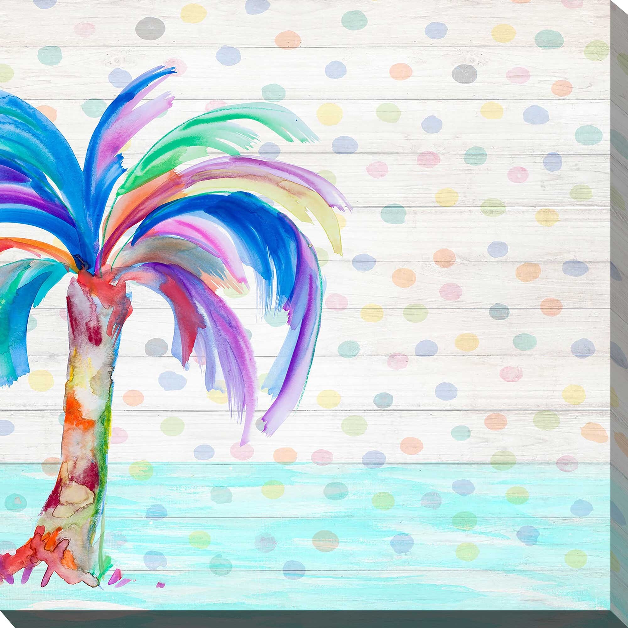 "Funky Palm on Dots I (Square)" Print on Acrylic