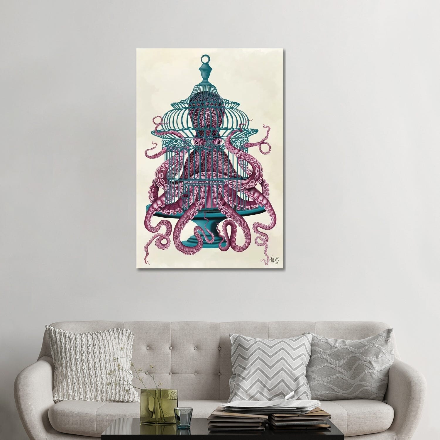 iCanvas "Pink Octopus in Cage" by Fab Funky Canvas Print