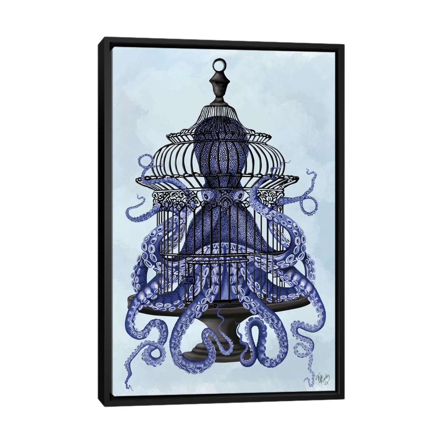 iCanvas "Blue Octopus in Cage" by Fab Funky Framed Canvas Print