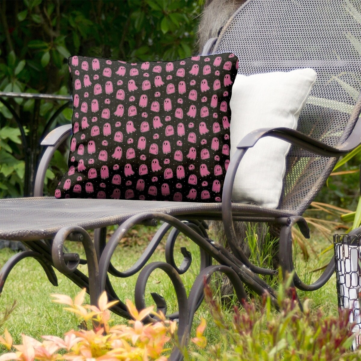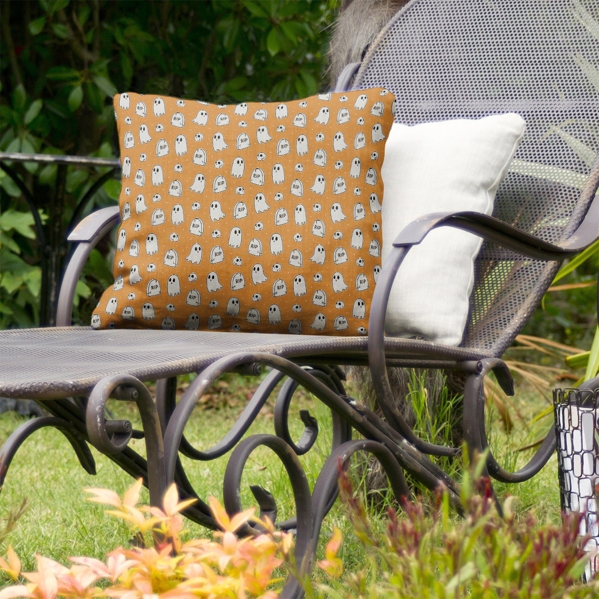 Porch & Den Hibbard Classic Ghost and Tombstone Pattern Throw Pillow