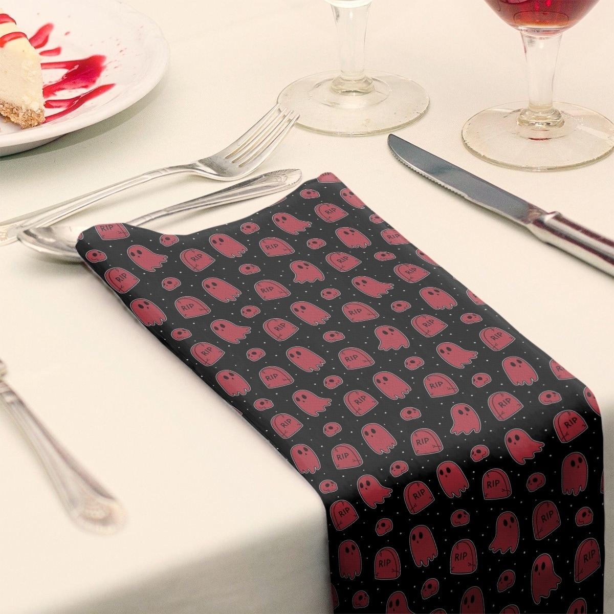 Black Background Ghosts Pattern Table Runner