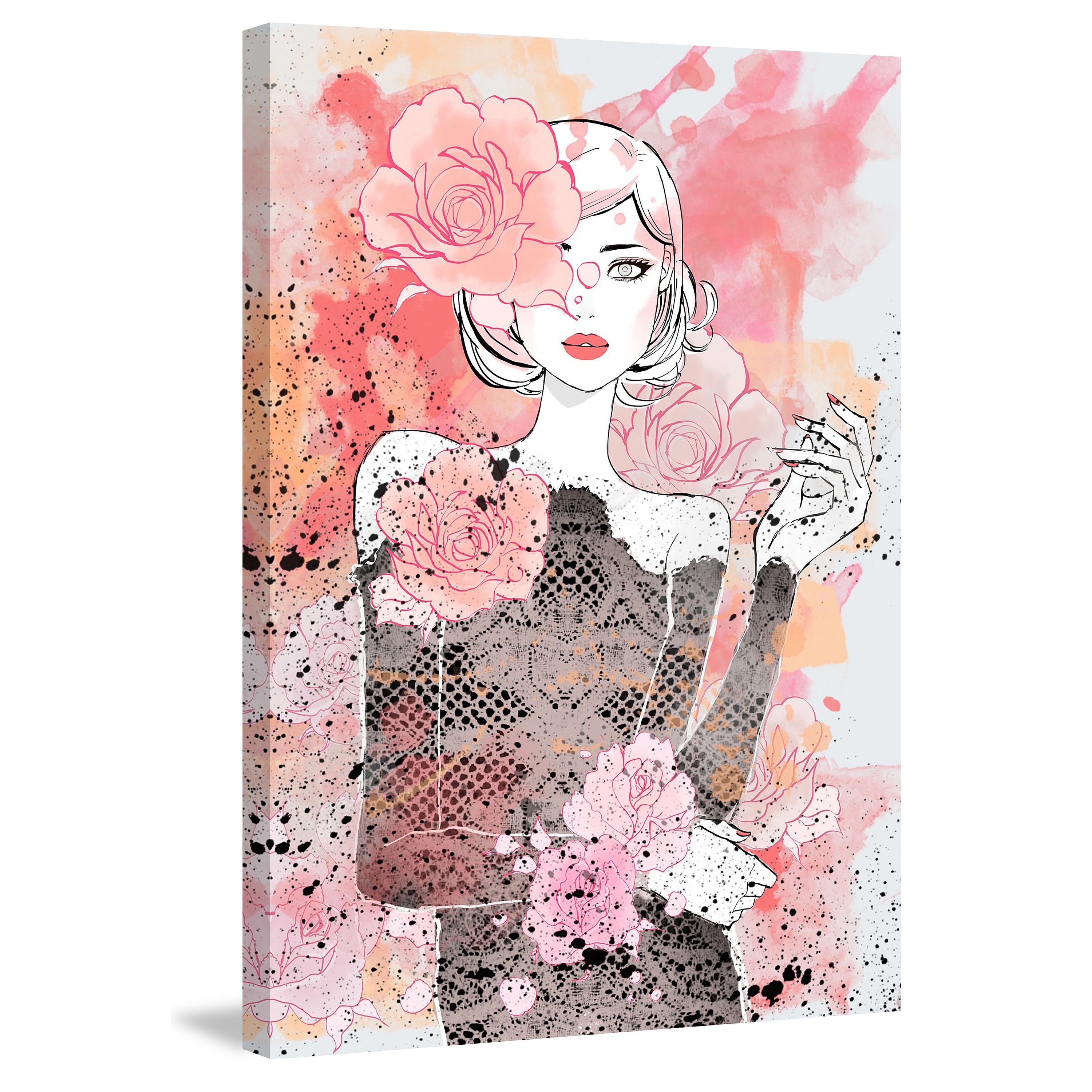 Marmont Hill - Handmade Floral Girl Print on Wrapped Canvas