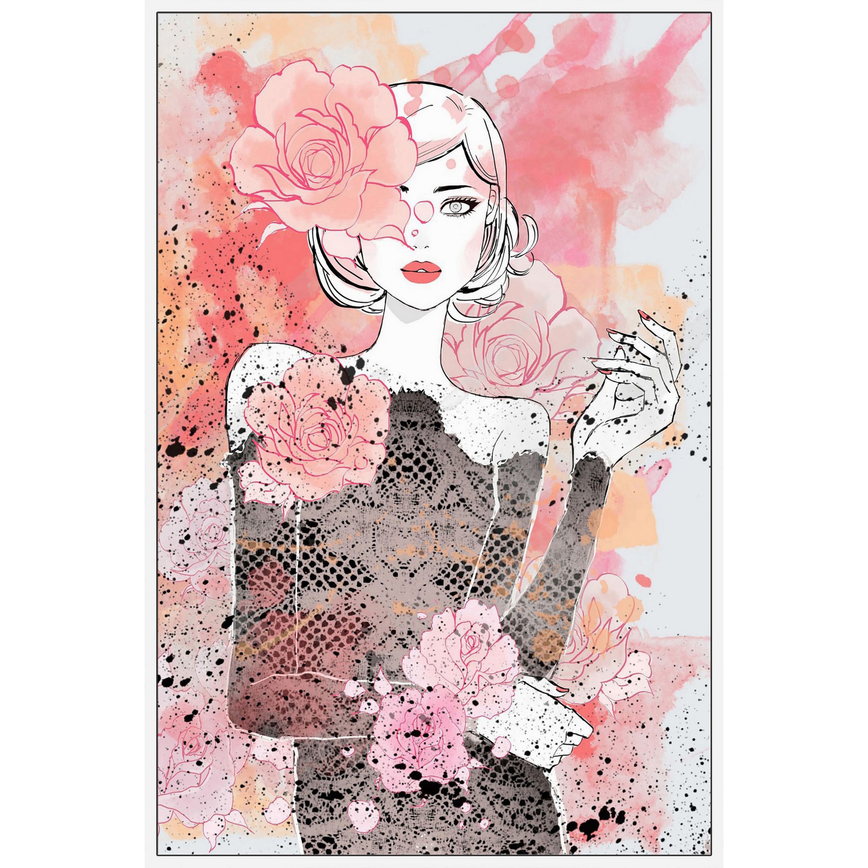Marmont Hill - Handmade Floral Girl Floater Framed Print on Canvas