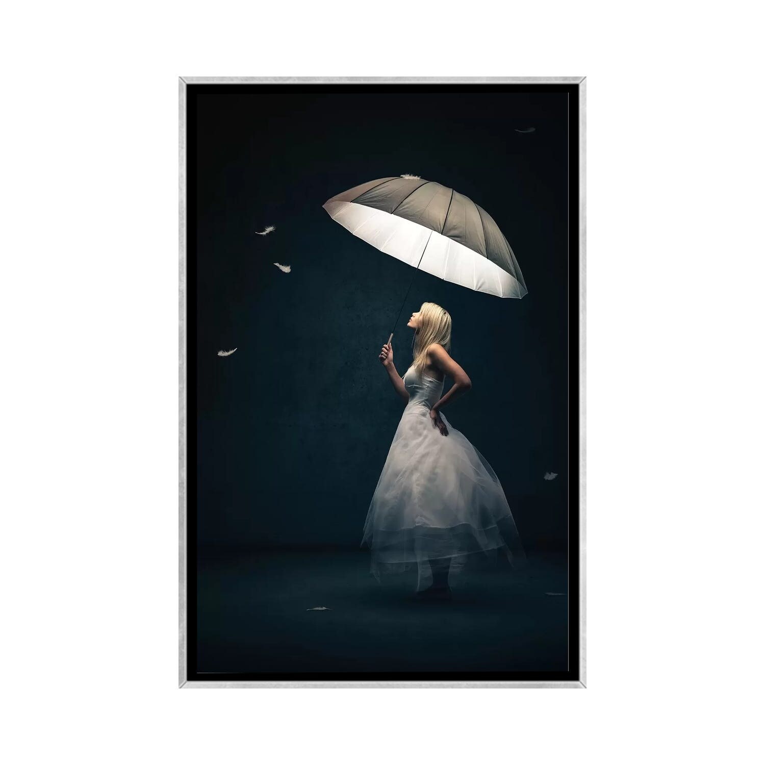 iCanvas "Girl With Umbrella And Feathers" by Johan Swanepoel Framed