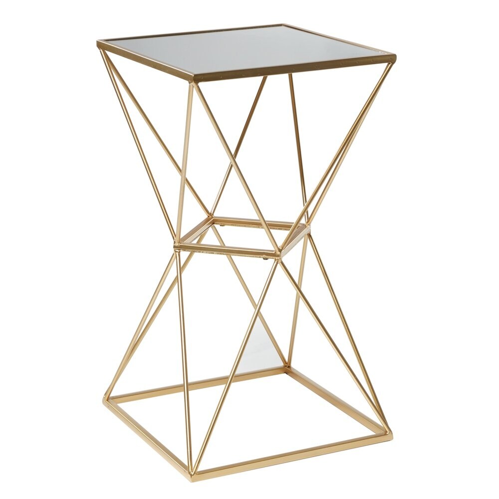 16" x 28" Gold Metal Accent Table with Mirrored Glass Top, 1-Piece