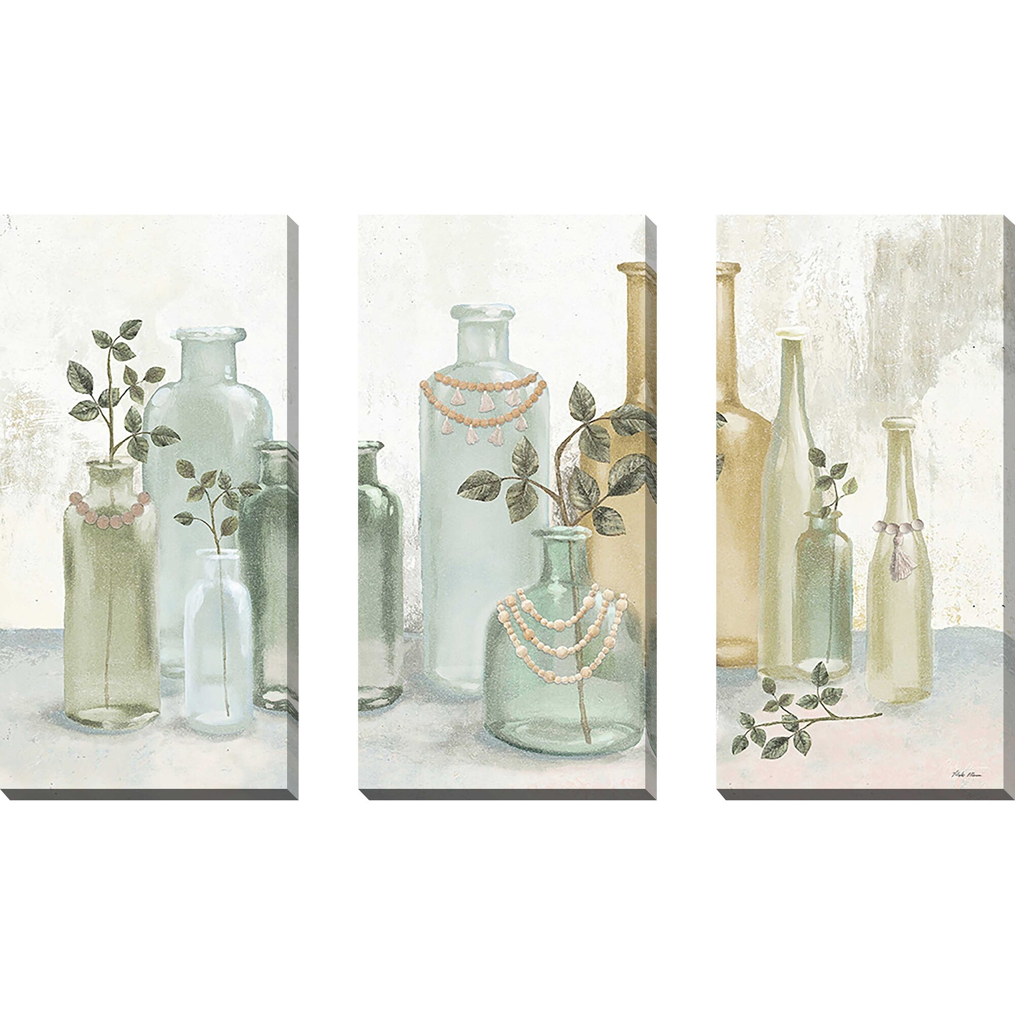 "Glass Bottles with Tassels" 3 Piece Set on Canvas