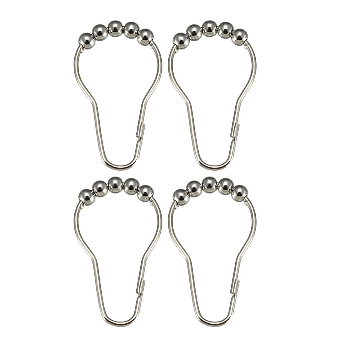 Shower Curtain Ring Hooks Metal Rods Curtains Liners Iron Ball 4Pcs - Single Roller Glide w Balls - 4 Pack