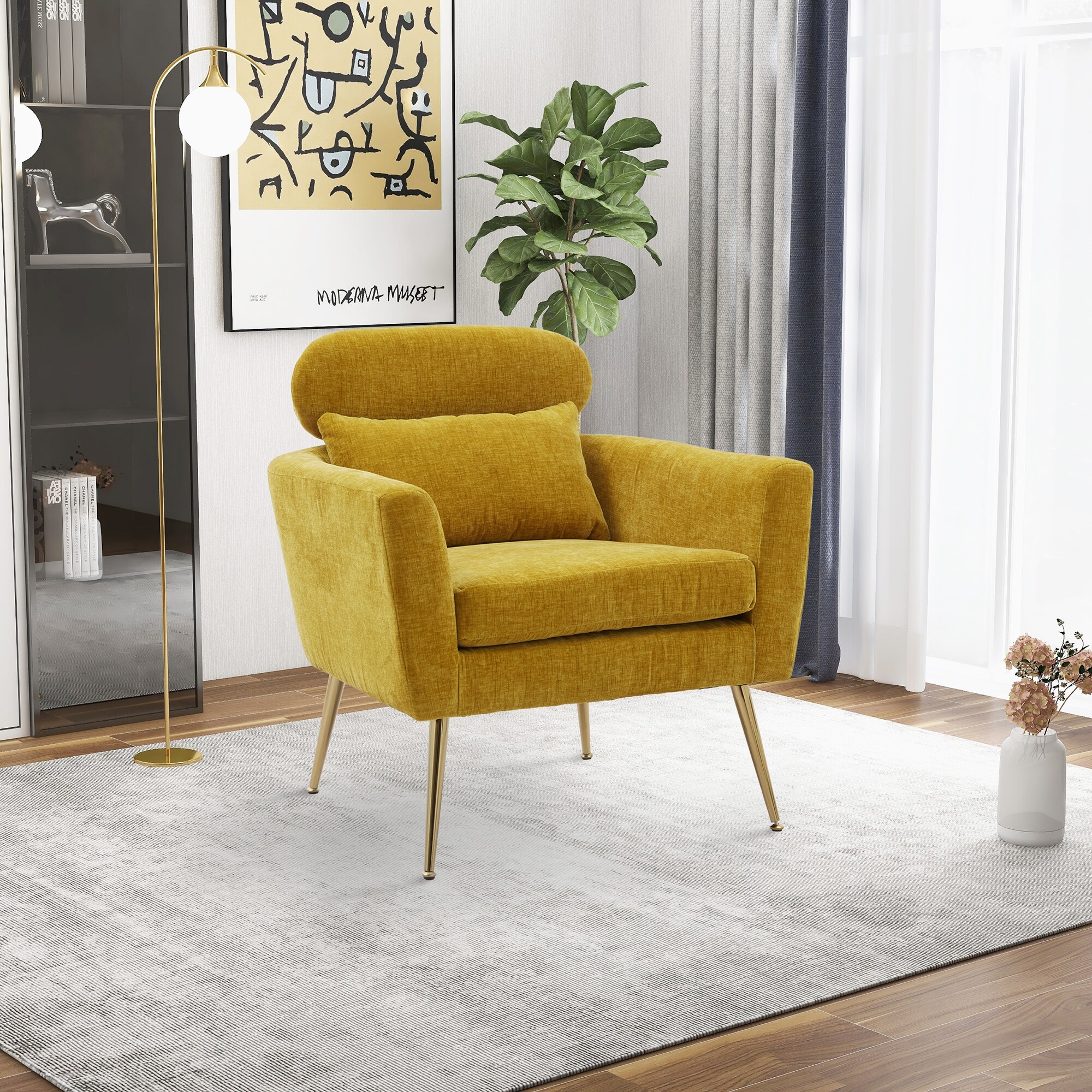 29.5"W Chenille Upholstered Accent Chair with Throw Pillow and Gold Metal Leg for Living Room Bedroom