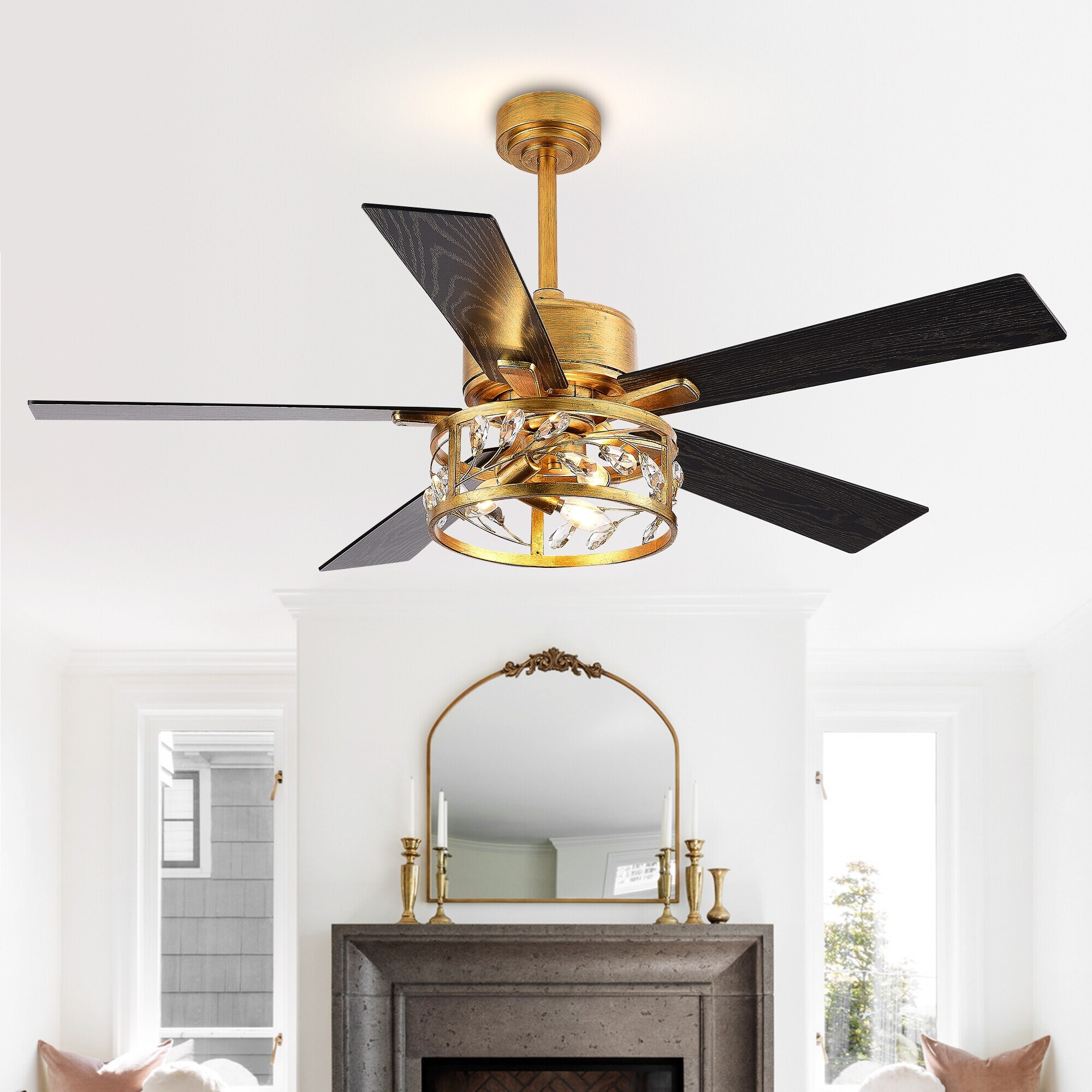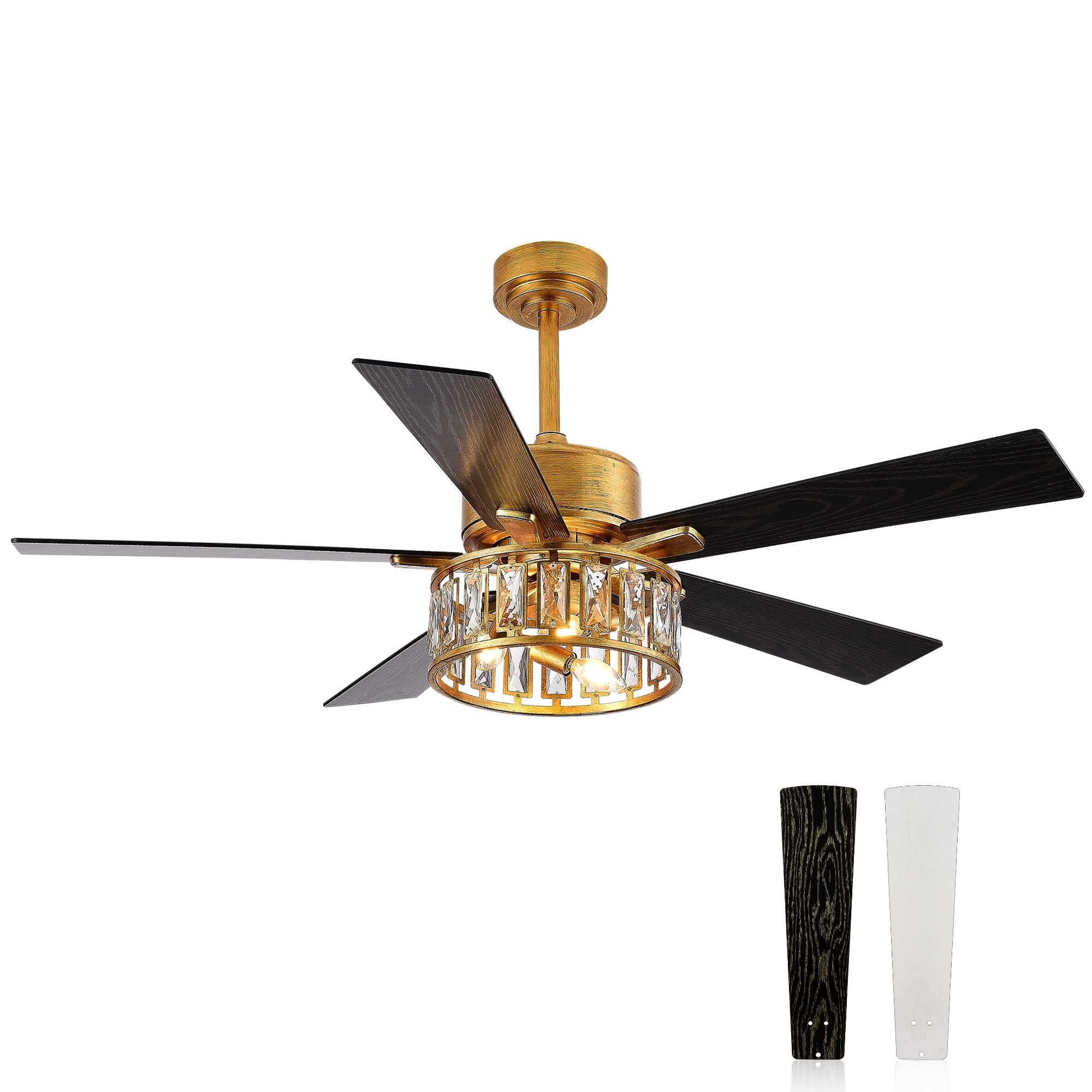 52" 5-Blade Vintage Gold Ceiling Fans with Crystal Light Remote Control - 52 Inch