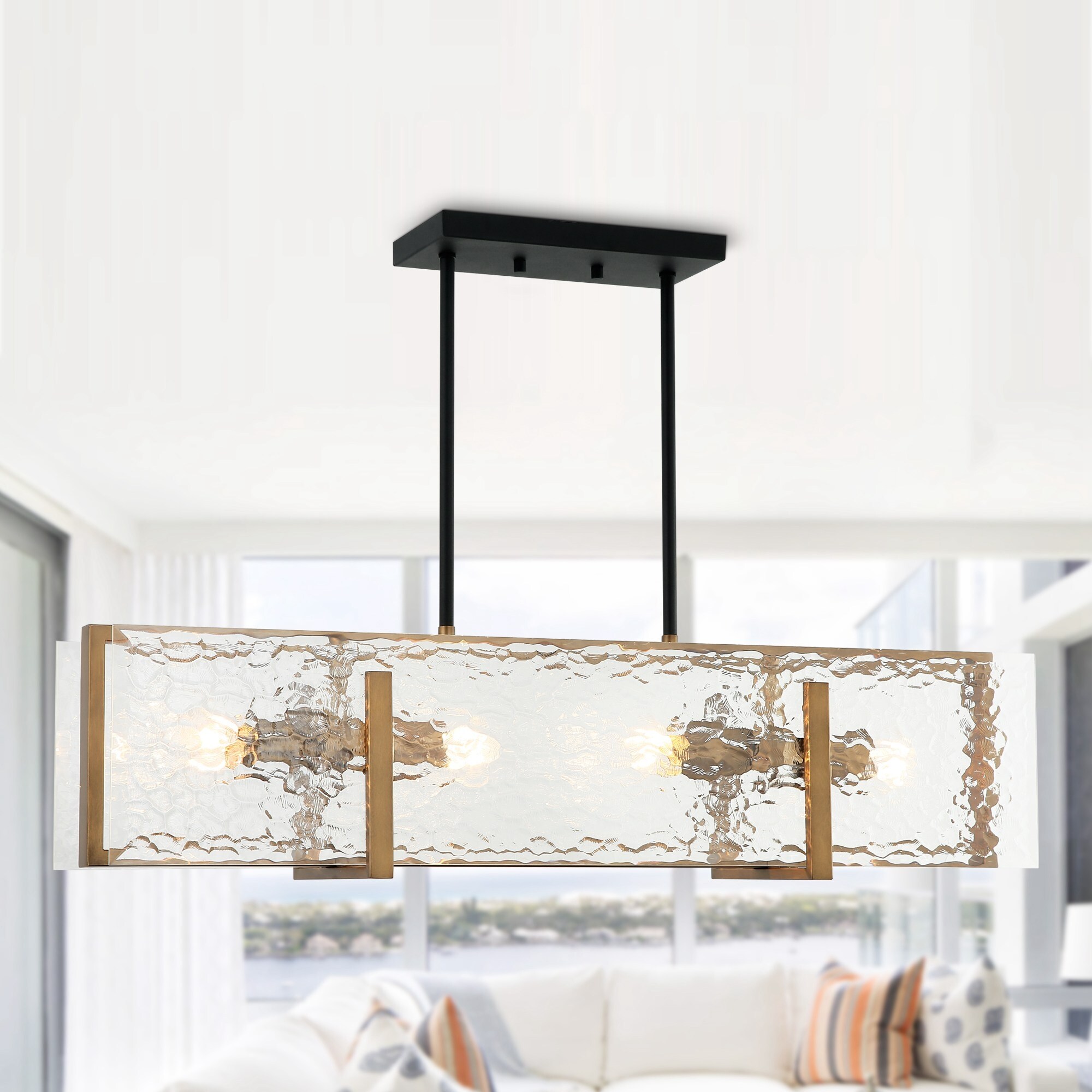 Modern 5-Light Black Gold Chandelier Linear Glass Island Lights for Dining Room