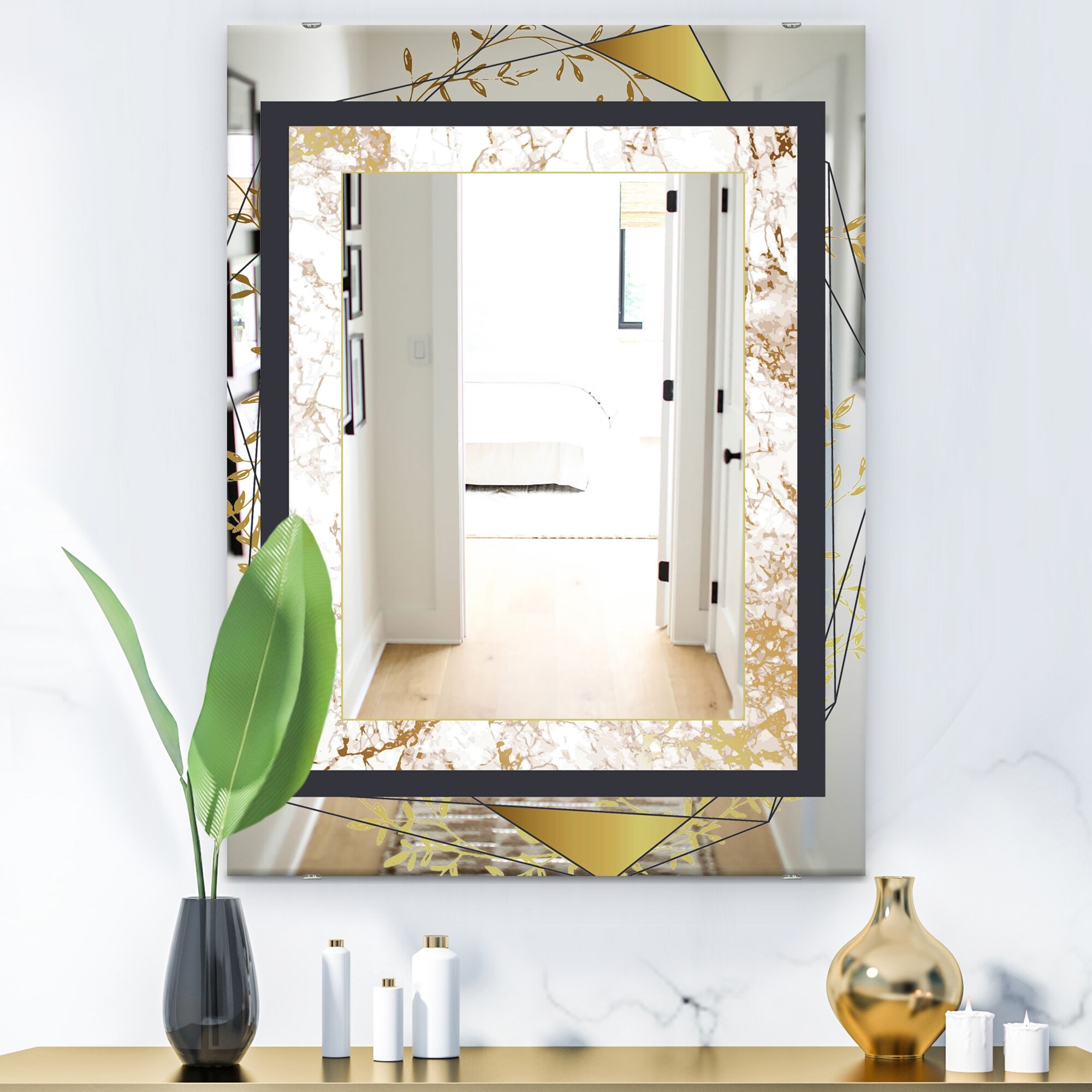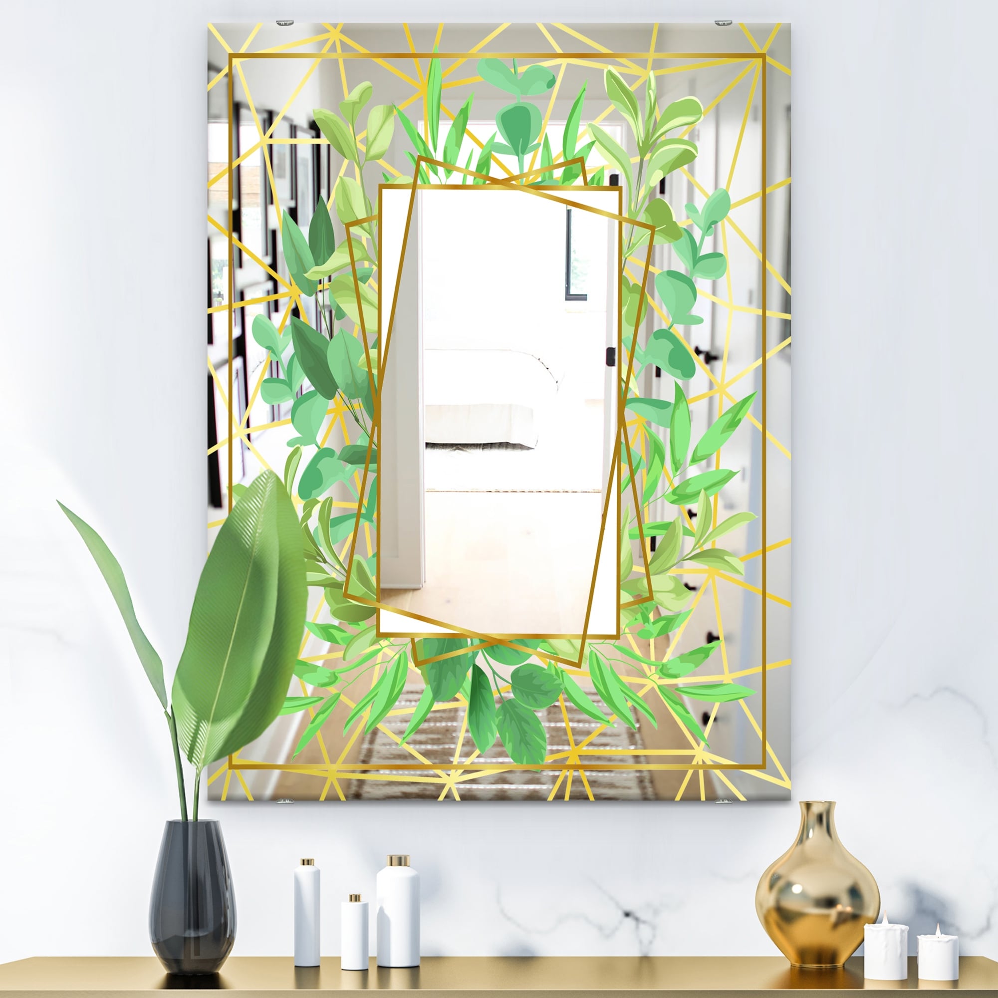 Designart 'Efflorescent Gold Green 5' Traditional Mirror - Floral and Modern Large Printed Wall Mirror