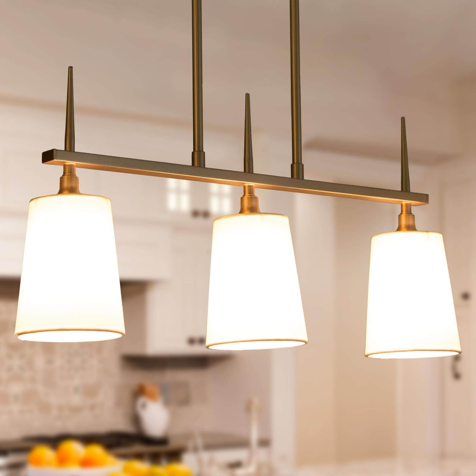 Mid-Century Modern 3-Light Gold Frosted Glass Linear Chandelier for Kitchen Island - 30"W x 7.5"H