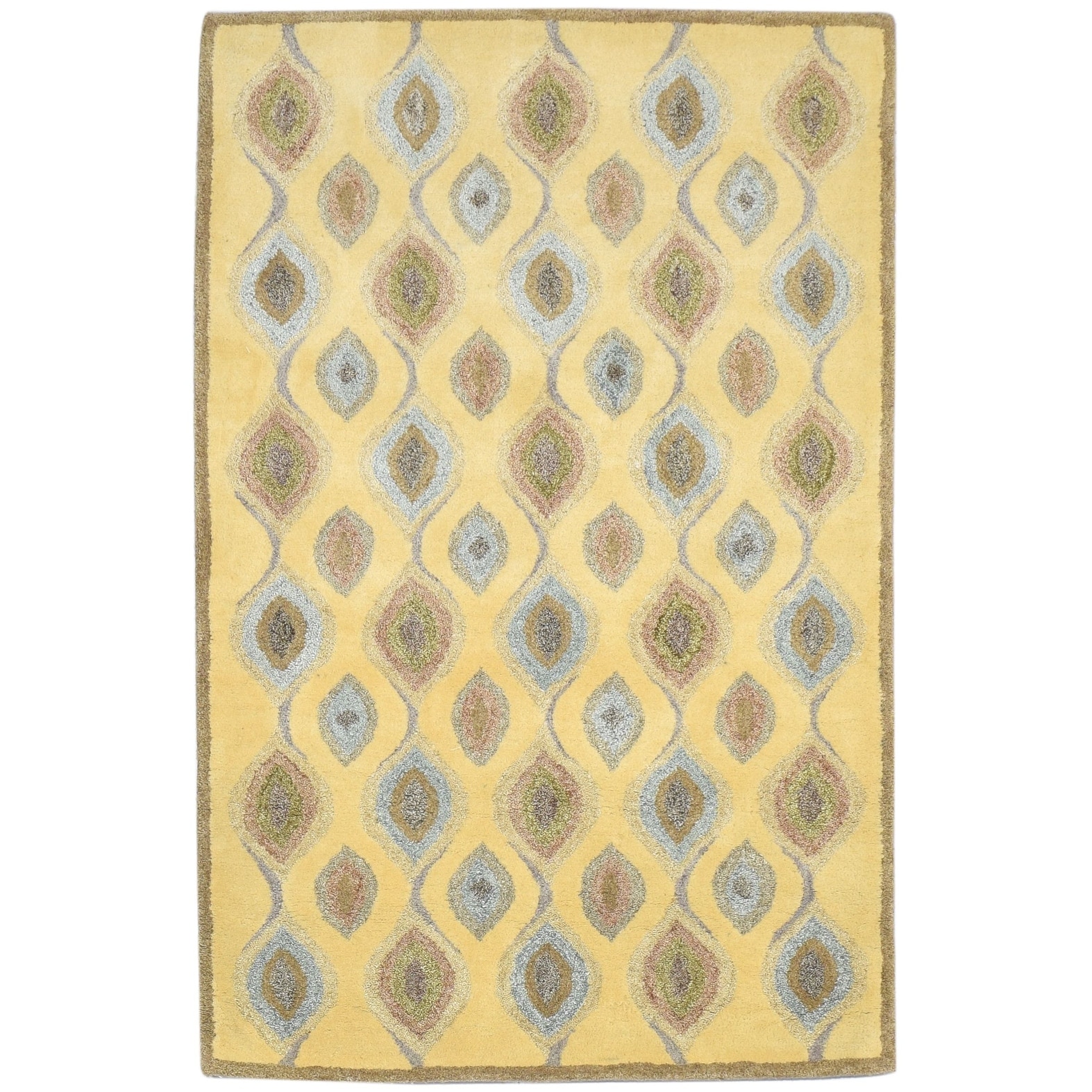 One of a Kind Hand-Tufted Modern 3' x 5' Diamond Wool Gold Rug - 3' x 5'