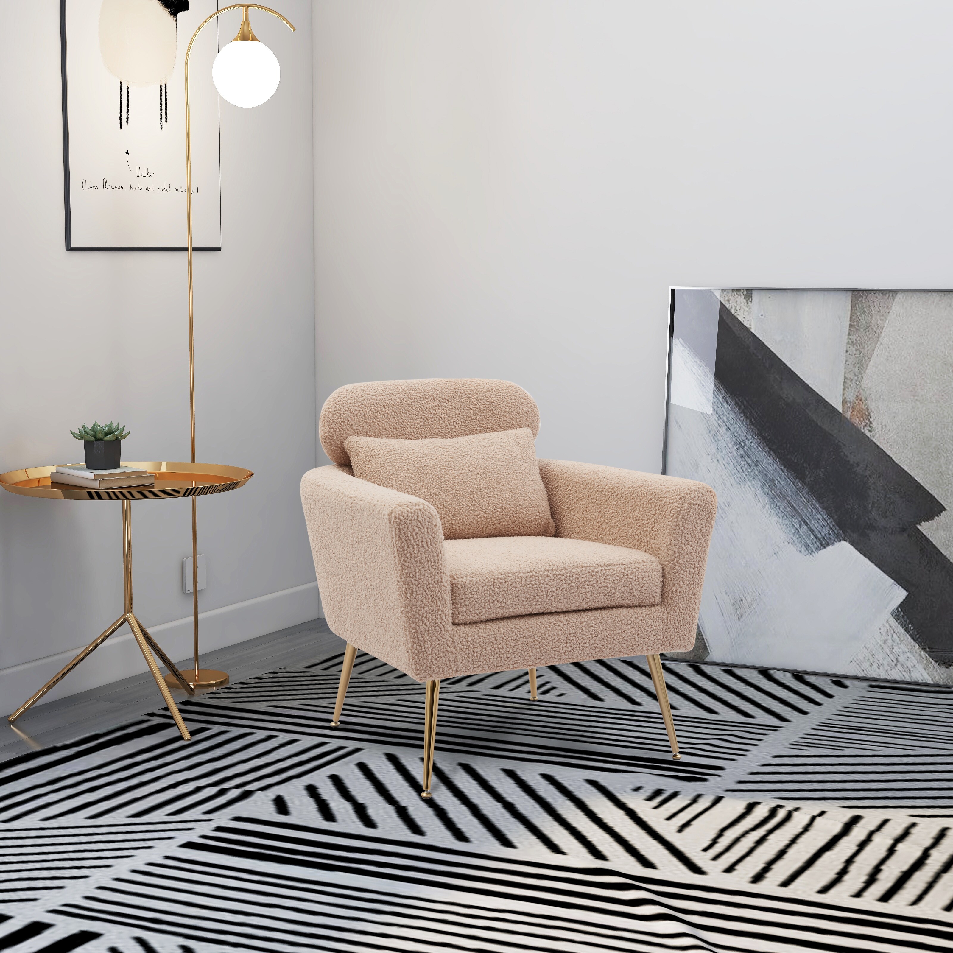 29.5"W Boucle Upholstered Accent Chair with Throw Pillow and Gold Metal Leg for Living Room Bedroom