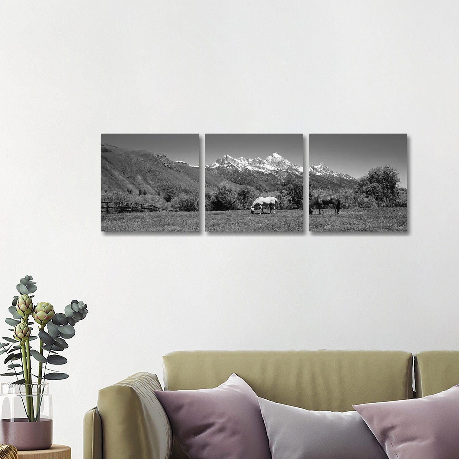 iCanvas "Horses And Teton Range Grand Teton National Park WY" by Panoramic Images 3-Piece Wall Art Set