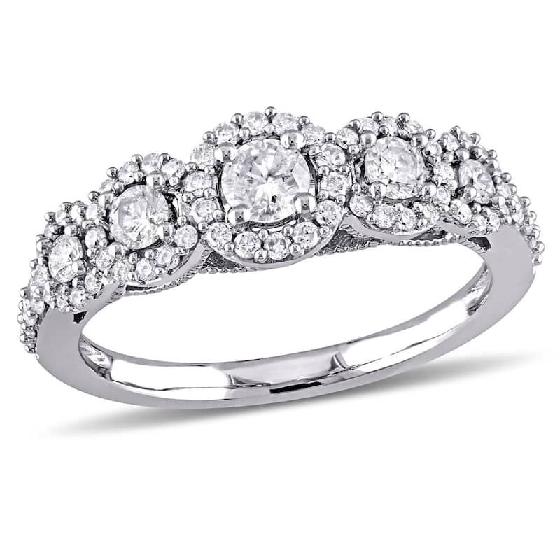 Miadora 10k White Gold 3/4ct TDW Diamond 5-Stone Halo Engagement Ring