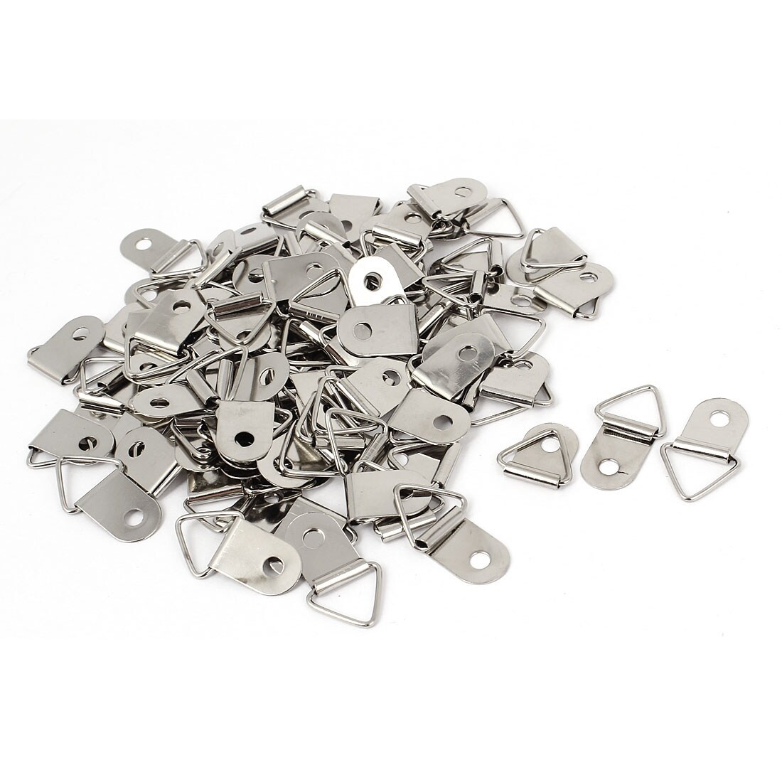 100Pcs 2.7x1.5cm Single Hole Triangle Rings Picture Frames Hanger Hook - Silver Tone