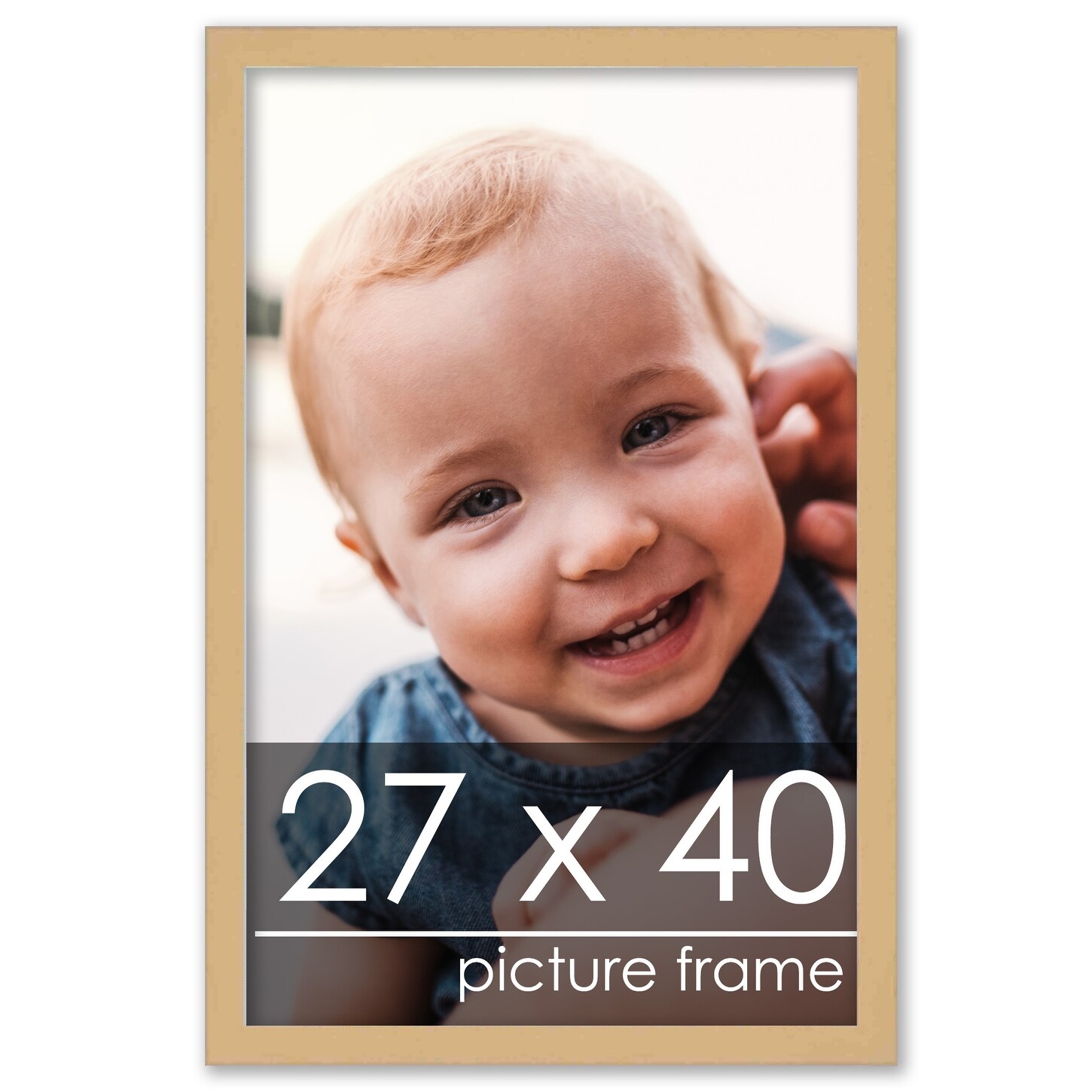 27x40 Traditional Natural Wood Picture Frame - UV Acrylic, Foam Board Backing, & Hanging Hardware Included!
