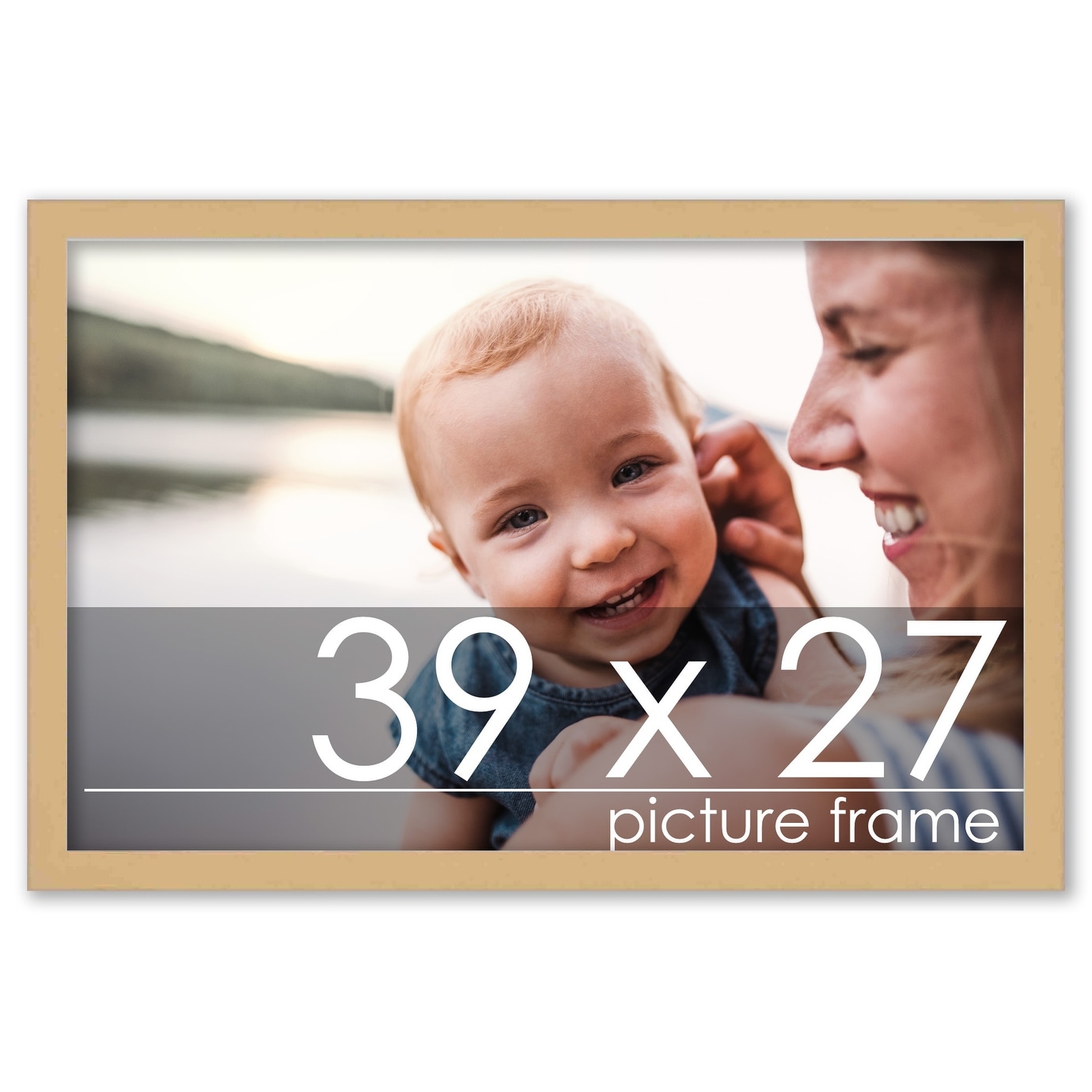 39x27 Traditional Natural Wood Picture Frame - UV Acrylic, Foam Board Backing, & Hanging Hardware Included!
